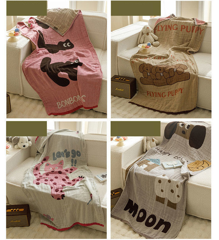 Brown animals Pattern Soft and Absorbent 4-Layer Cotton Bath Towel for Adults and Children | Cartoon Design | 80*160 cm | Perfect for Bathing and Lounging