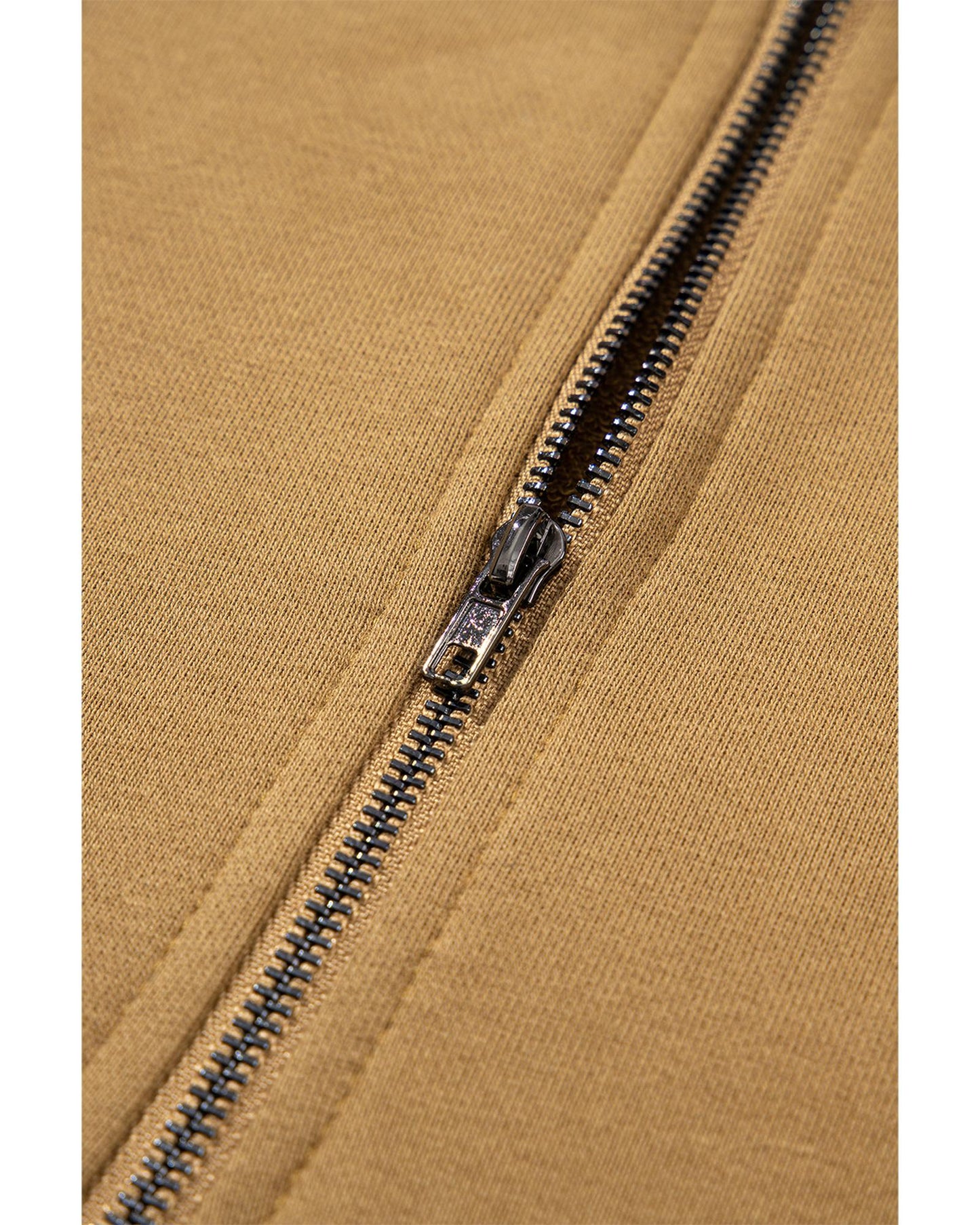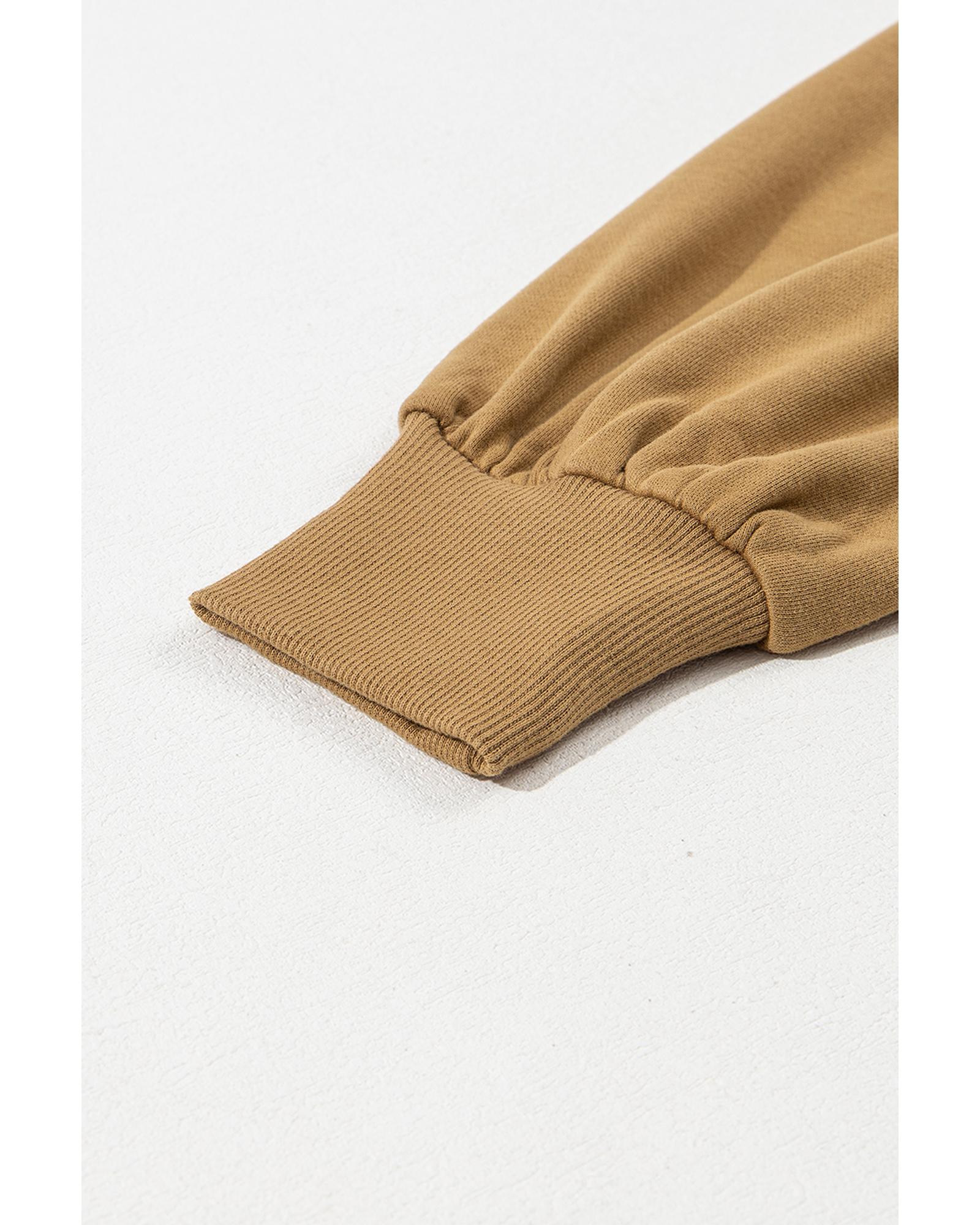 Brown Solid Kangaroo Pocket Half Zipper Oversized Hoodie - M