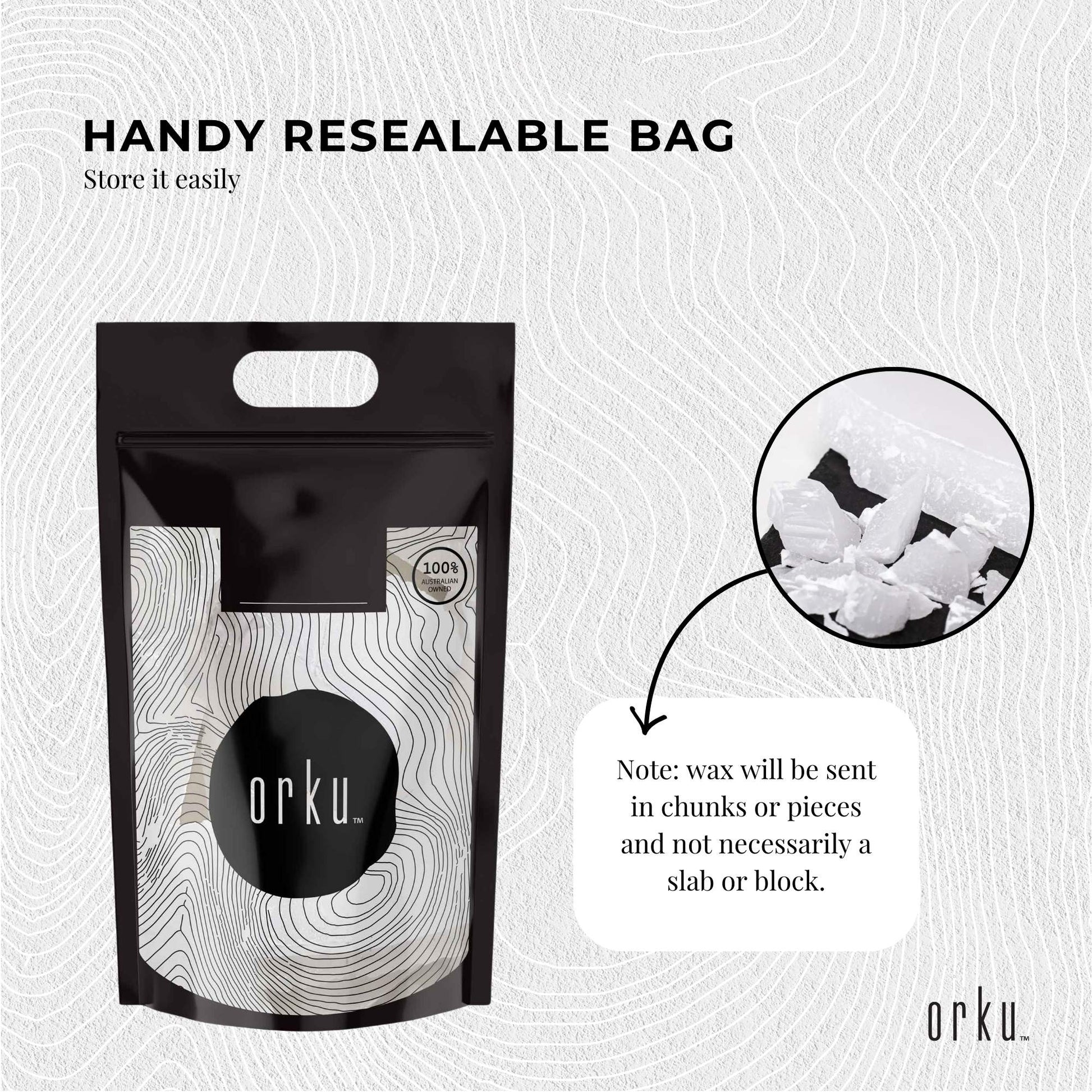 20Kg Paraffin Wax in Resealable Bag.