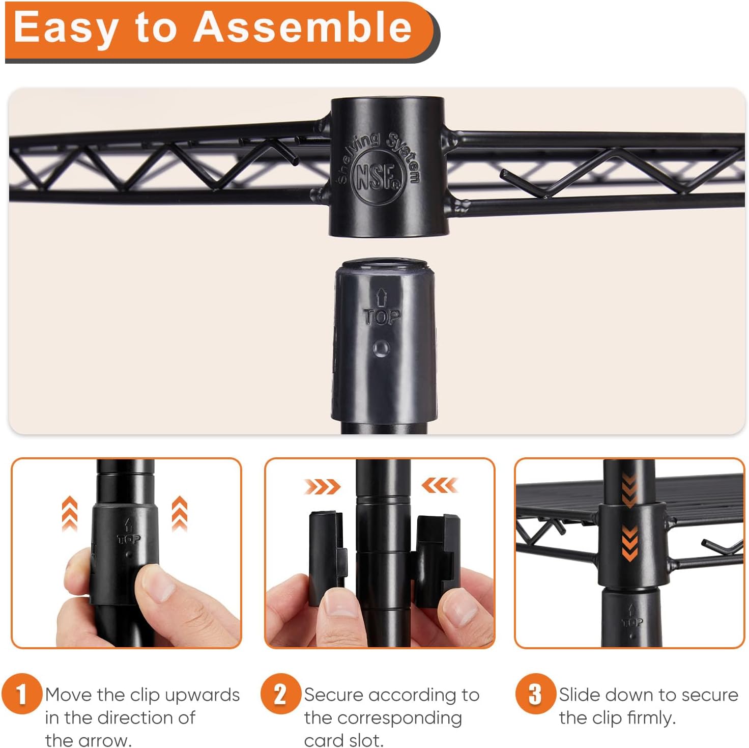 - HEAVY-DUTY METAL STRUCTURE: Crafted from premium metal with a rust-resistant finish, each shelf supports up to 175 kgs. This durable rack delivers long-lasting performance in humid kitchens, steamy bathrooms, or busy laundry rooms.