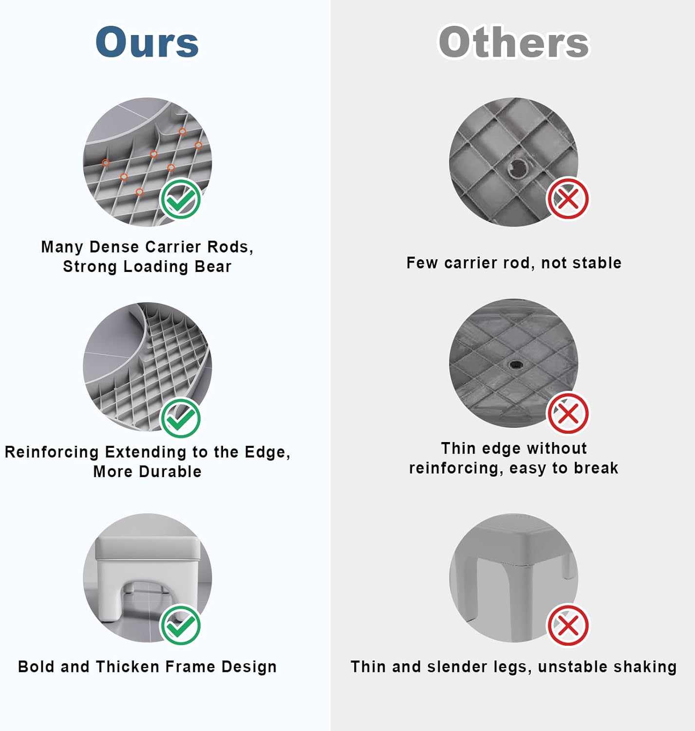 - STURDY & FAMILY-FRIENDLY DESIGN: Built from thick, odorless plastic with reinforced support bars, this squat toilet stool holds strong under pressure. Safe for children, seniors, and pregnant women thanks to its durable structure.