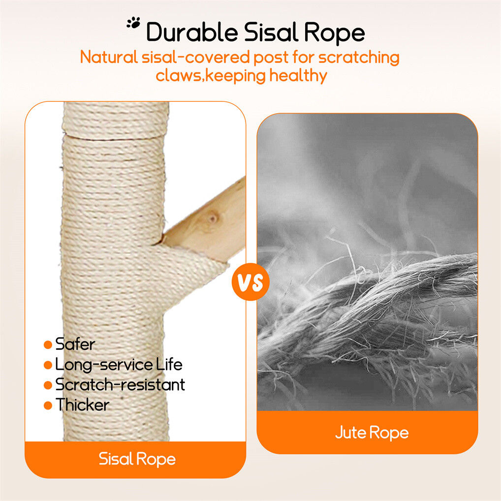 - Comfort Meets Fun: Equipped with plush cushions and a sisal-covered post, this cat tree offers the perfect mix of comfort and entertainment, keeping your cat engaged and your furniture safe.