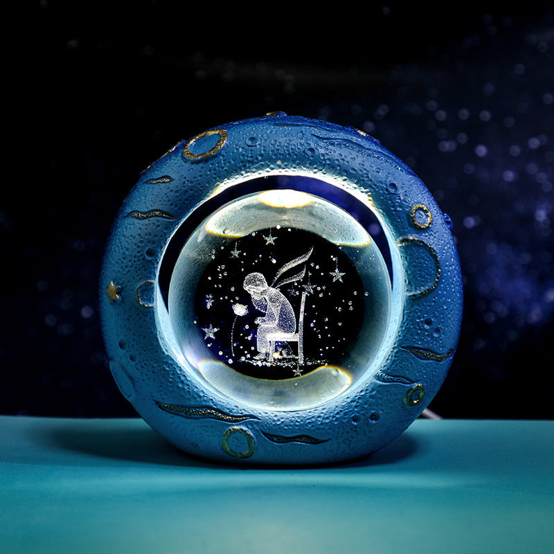 Step into a realm of wonder with our captivating 3D Crystal Ball Night Light from the "Starry Sea Annulus Series." This exquisite piece combines artistic craftsmanship with soothing illumination, making it a perfect night light, a stunning desktop ornament, or a truly memorable gift for any occasion.