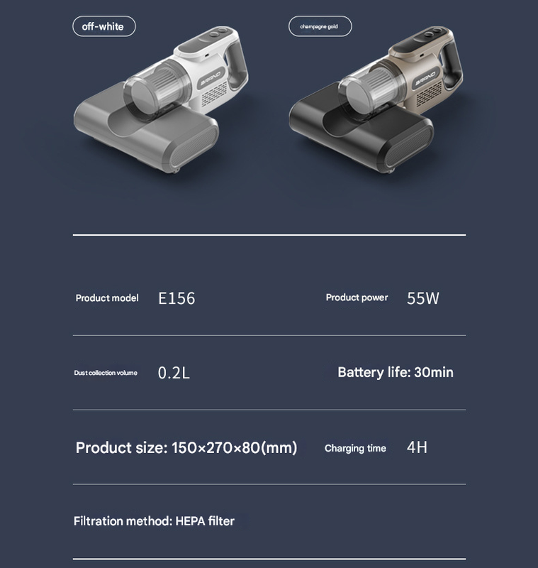 - Powerful Suction: High-frequency vibration and strong suction remove deep-seated mites and dust.