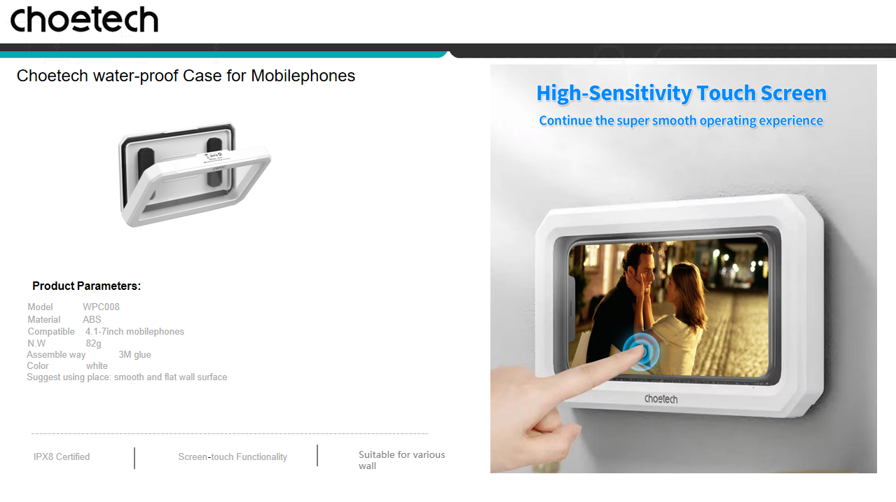 CHOETECH WPC008 Bathroom Waterproof Phone holder (up to 6.7-inch) White
