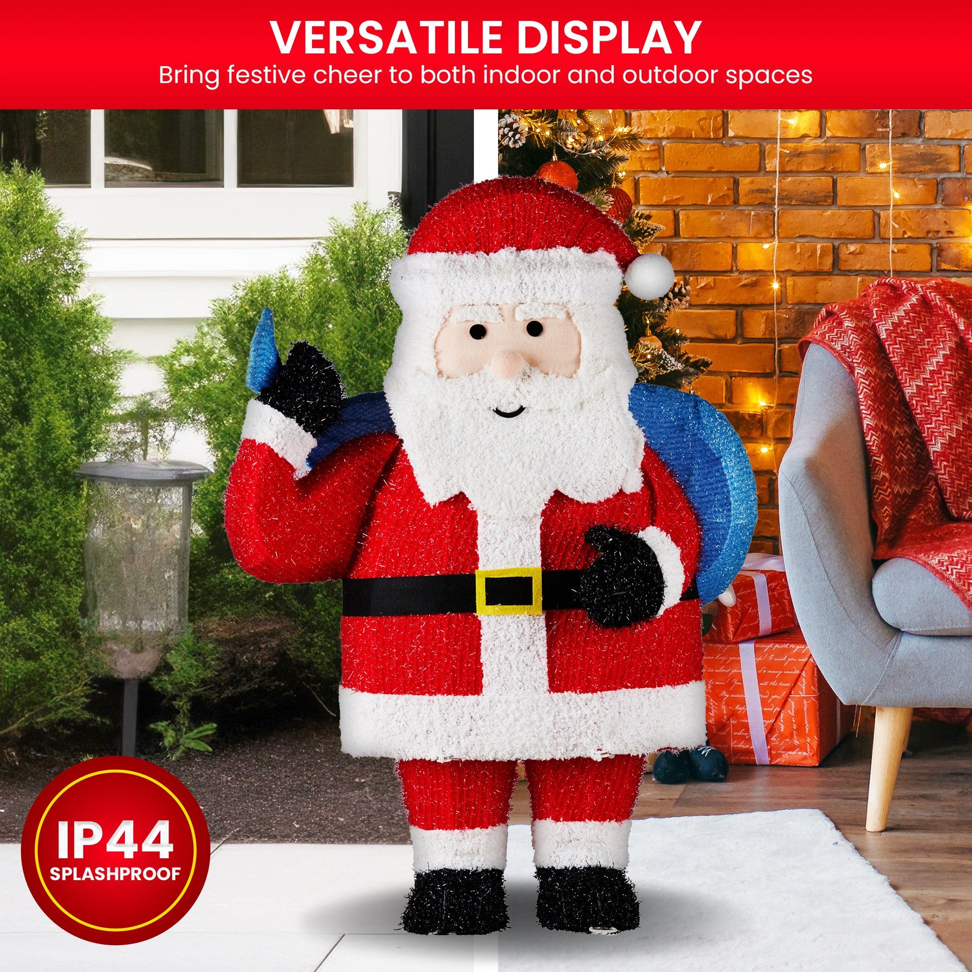 Bring a festive glow to your holiday season with this delightful Christmas Santa display. Perfect for both indoor and outdoor settings, it showcases 90 LED lights in a warm white hue, creating a cosy and welcoming ambience. Equipped with an outdoor electric adaptor, this cheerful Santa is prepared to spread joy and holiday cheer in any area!