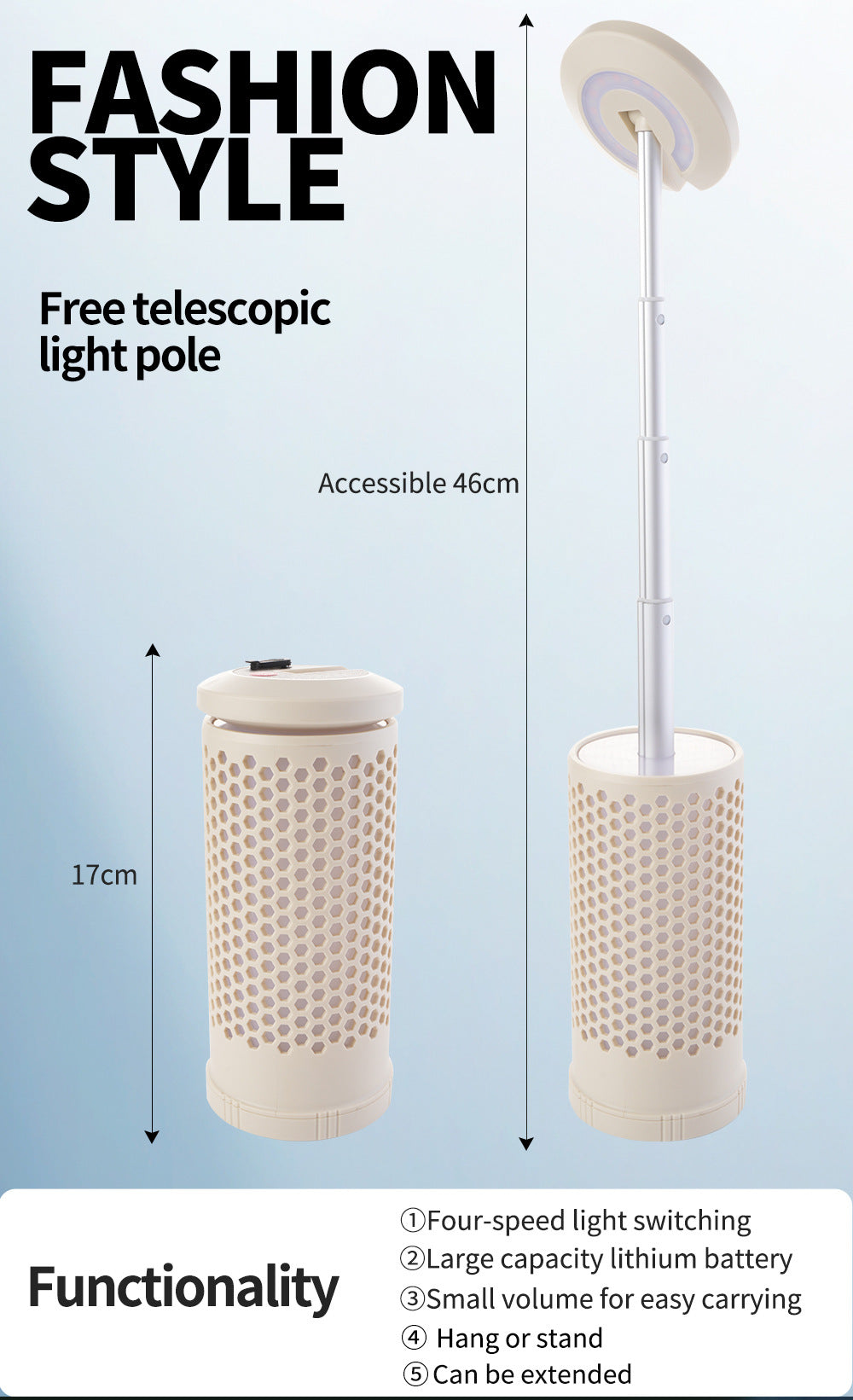 Enhance your outdoor experiences with our Collapsible Camping Lantern, designed to provide reliable and versatile lighting wherever you go. This lantern combines a compact form factor with a long-lasting battery, perfect for camping, exploration, maintenance, or power outages. The design allows for hanging or tabletop use, and to set the desired ambiance. Enjoy extended illumination with a battery life of approximately 45 hours. The four-speed light switching allows you to easily adapt the brightness to different situations, and the unit features convenient Type-C charging. With its telescopic light pole, the unit is scalable to suit different needs. Functions as a camping lamp, area light and emergency flashlight to suit most outdoor and home situations.