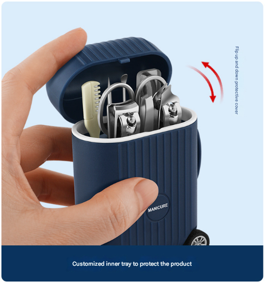 Stay perfectly groomed wherever you go with this charming and compact 8-piece manicure set. Designed to look like a miniature travel suitcase, this kit combines fun and functionality, containing all the essential tools you need for hand care, nail grooming, and personal touch-ups. It is the ultimate travel companion for anyone who loves to stay polished on the move.