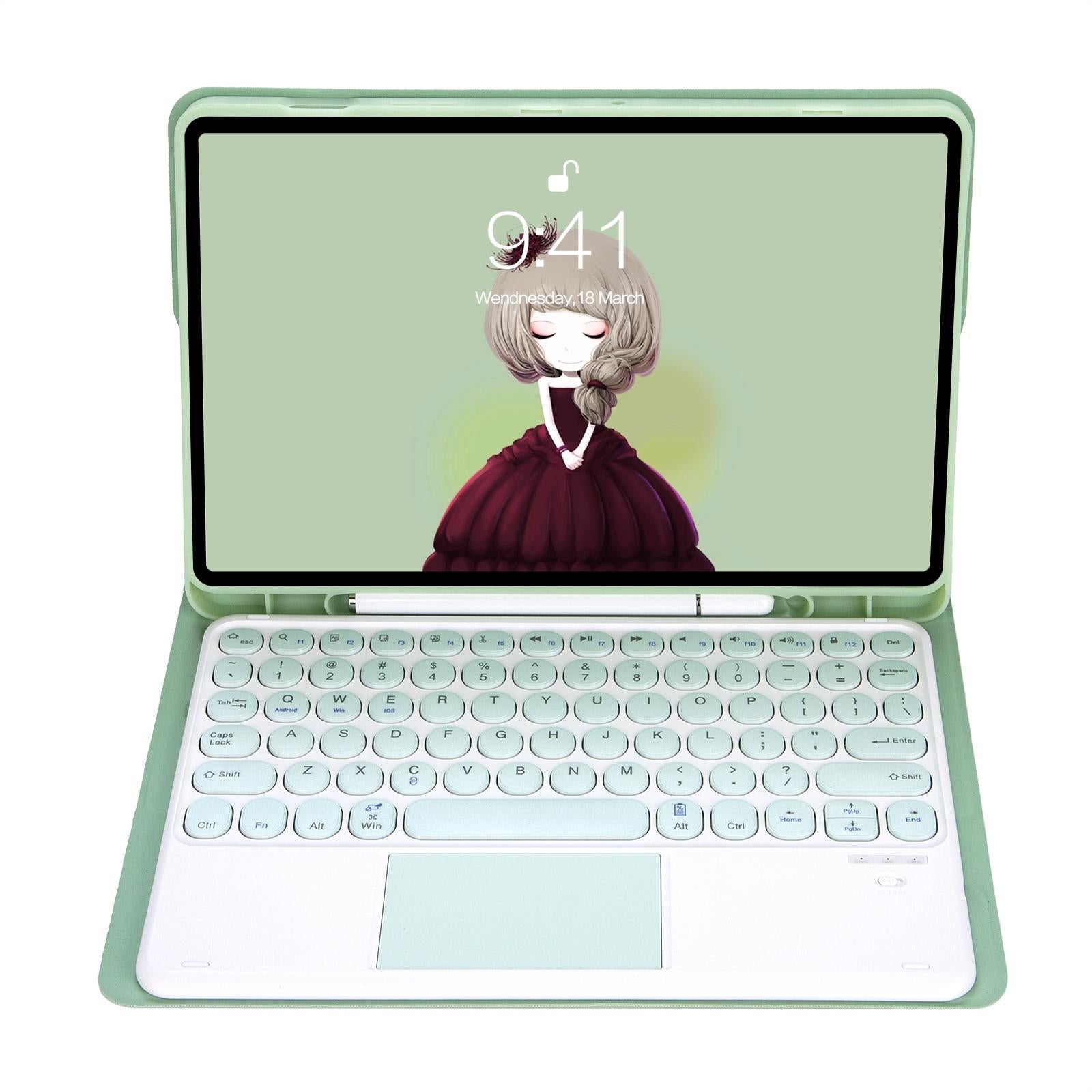 • 1 x Yt102B-A Detachable Candy Colour Skin Feel Texture Round Keycap Bluetooth Keyboard Leather Case With Touch Control For Ipad 10.2 2020 2019 / Air 2019 / Pro 10.5 Inch Black