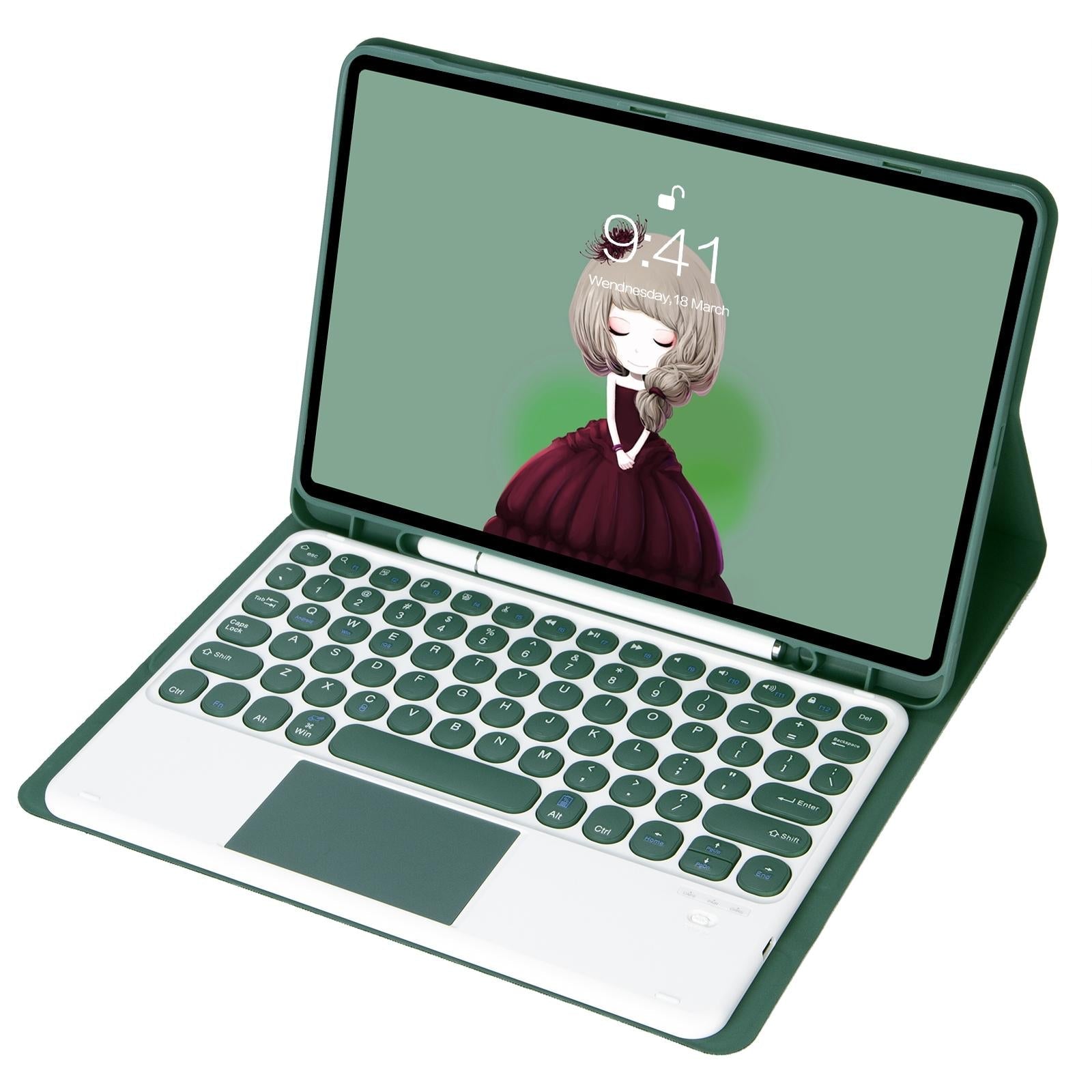• 1 x Yt102B-A Detachable Candy Colour Skin Feel Texture Round Keycap Bluetooth Keyboard Leather Case With Touch Control For Ipad 10.2 2020 2019 / Air 2019 / Pro 10.5 Inch Black