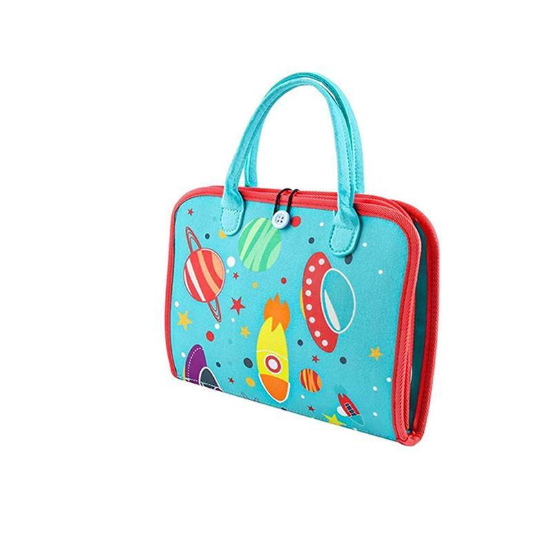Crafted from premium felt cotton, the board features a lightweight portable design with a handle, making it ideal for use during travel—on airplanes, in cars, or while waiting in public spaces. A removable DIY panel invites imaginative play, allowing little hands to create freely while reinforcing basic concepts such as numbers, letters, and colours.