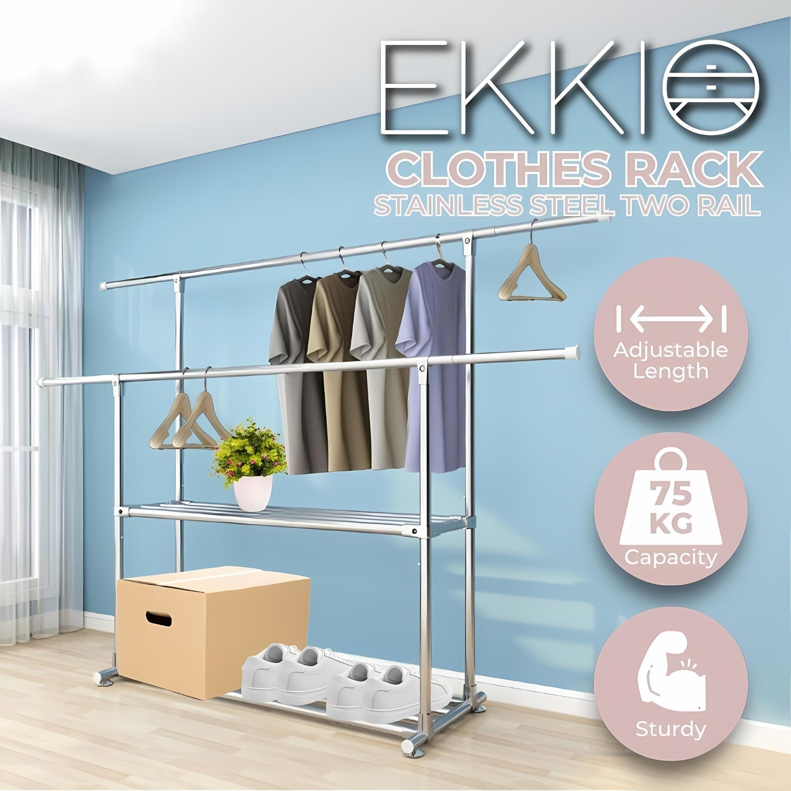 Ekkio Clothes Rack Stainless Steel Two Rail