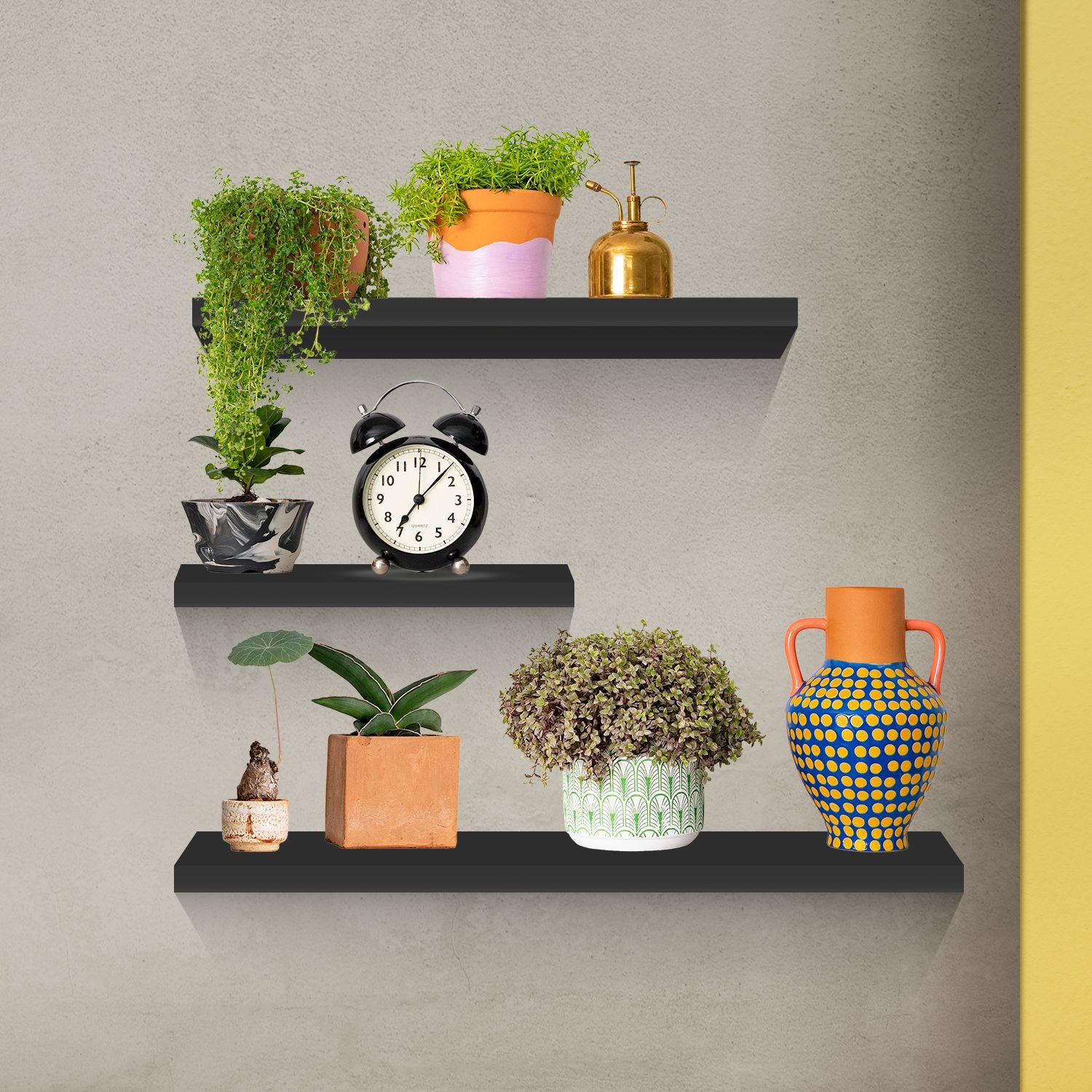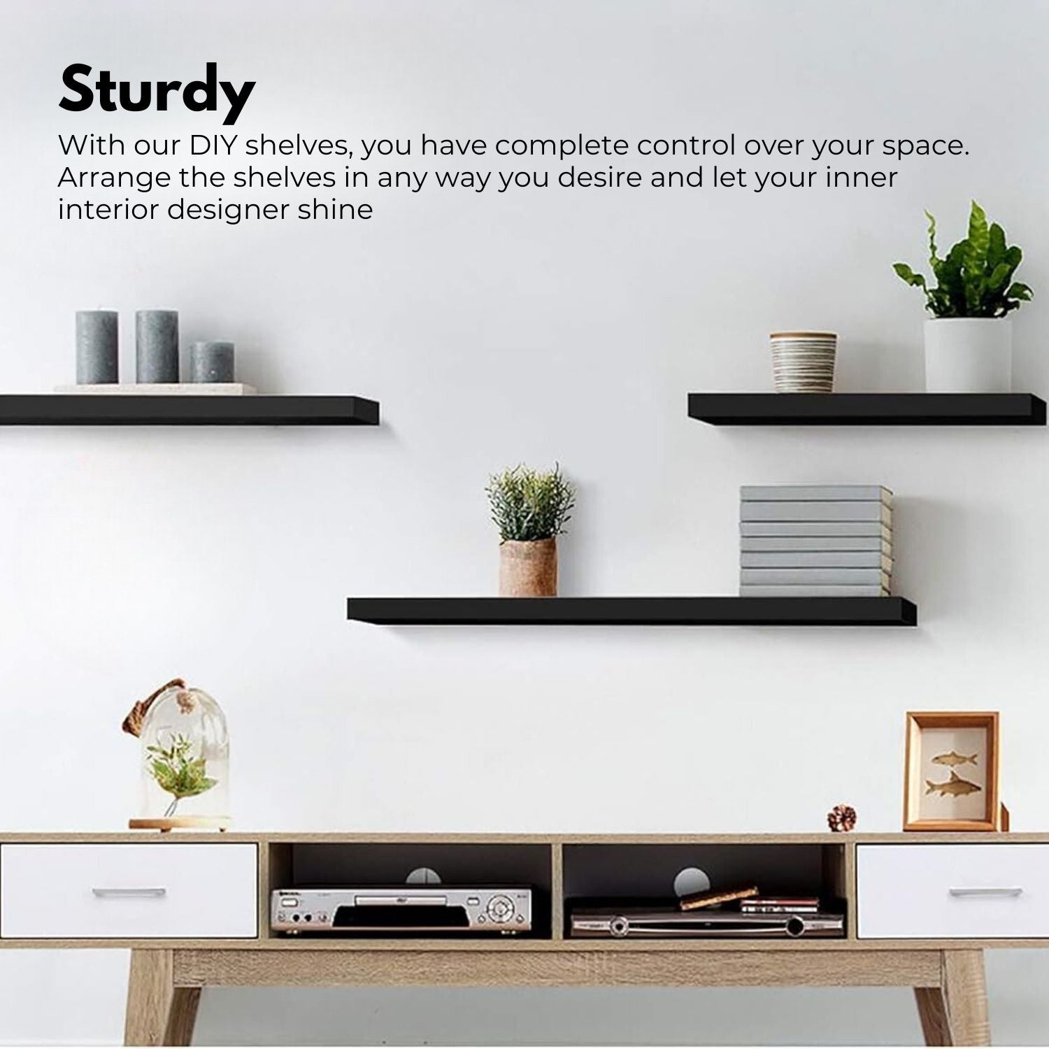 - DIY Available: can place however layout you like - Solid Material: made of mdf and is 3.5cm thick - Space Saving - 3 Size available: 80, 30, 50cm - Easy to set up: screw the holder on the all and insert the shelf according to predrill hole
