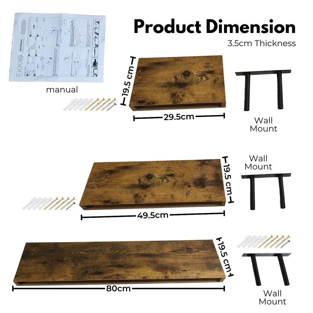 - Space-Saving Design: The Ekkio Floating Shelf Set of 3 allows to create additional storage space without occupying valuable floor area, making it perfect for compact living spaces.