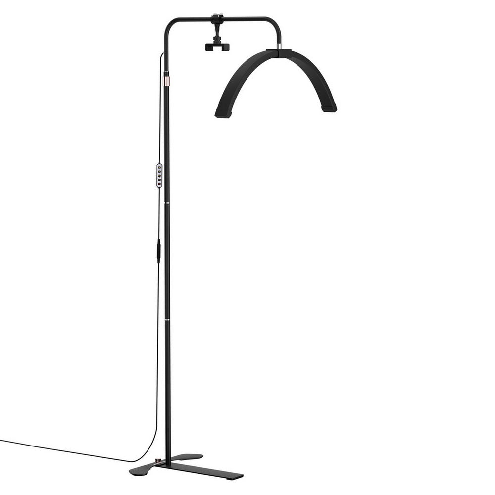 The Embellir Beauty Light LED Half Moon Lamp delivers professional-grade lighting for makeup application, lash extensions, and detailed beauty tasks. Its innovative half-moon design with 252 LED beads provides even, shadow-free illumination, while adjustable colour temperature (3000K-6000K) and brightness (10-100%) let you customize your lighting environment. Featuring flexible height adjustment (144-180cm), 360-degree rotation, and convenient remote control operation, this lightweight lamp is perfect for home salons and content creators. The included detachable phone holder adds versatility for recording tutorials or video calls.