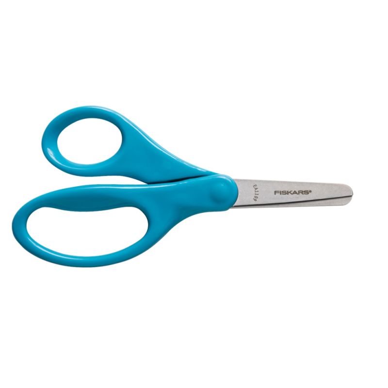 Fiskars Kids 13cm Blunt Pink / Blue Scissor have big, curvy handles to help position the index finger and ensuring a comfortable cutting position. Features rounded tips and anti-microbial handle inhibiting the growth of bacteria. Right-handed.