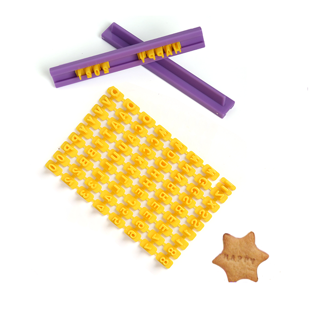 The tool features a set of alphabet letters and numbers that can be used to emboss fondant or cut out dough. The stamps are easy to use and can be pressed firmly into the dough or fondant to create clear and precise impressions.