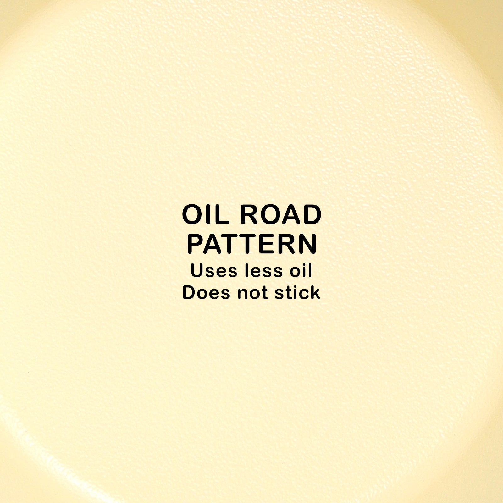 Giorno Felice IH 28cm non-stick Pan harnesses Korean technology, featuring an innovative oil-road pattern layer that ensures even oil distribution, reducing the need for excess. Moreover, it adds a vibrant splash of trendy color to your kitchen.