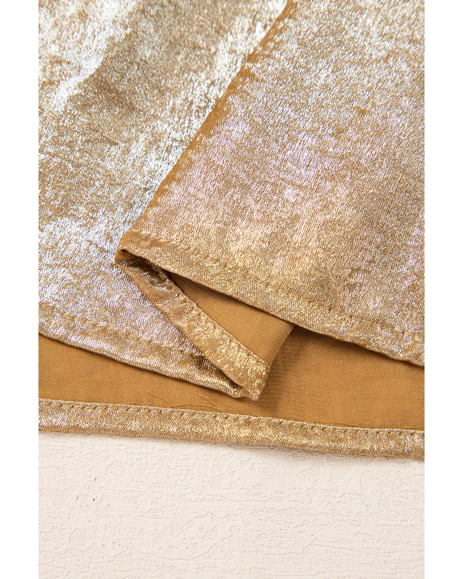 - Gold Bow Tie Front Puff 3/4 Sleeve Ruffle Hem Blouse