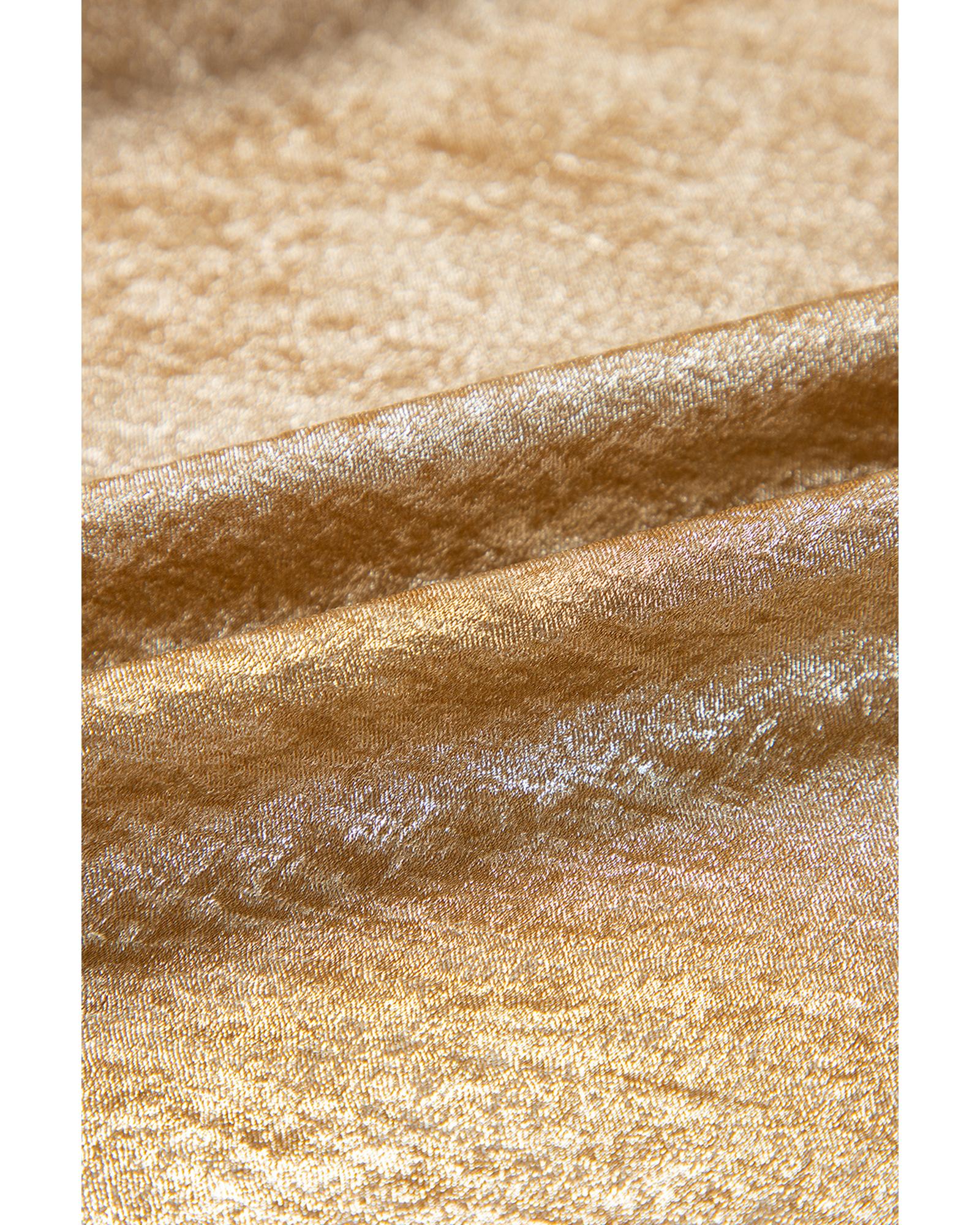 - Gold Bow Tie Front Puff 3/4 Sleeve Ruffle Hem Blouse