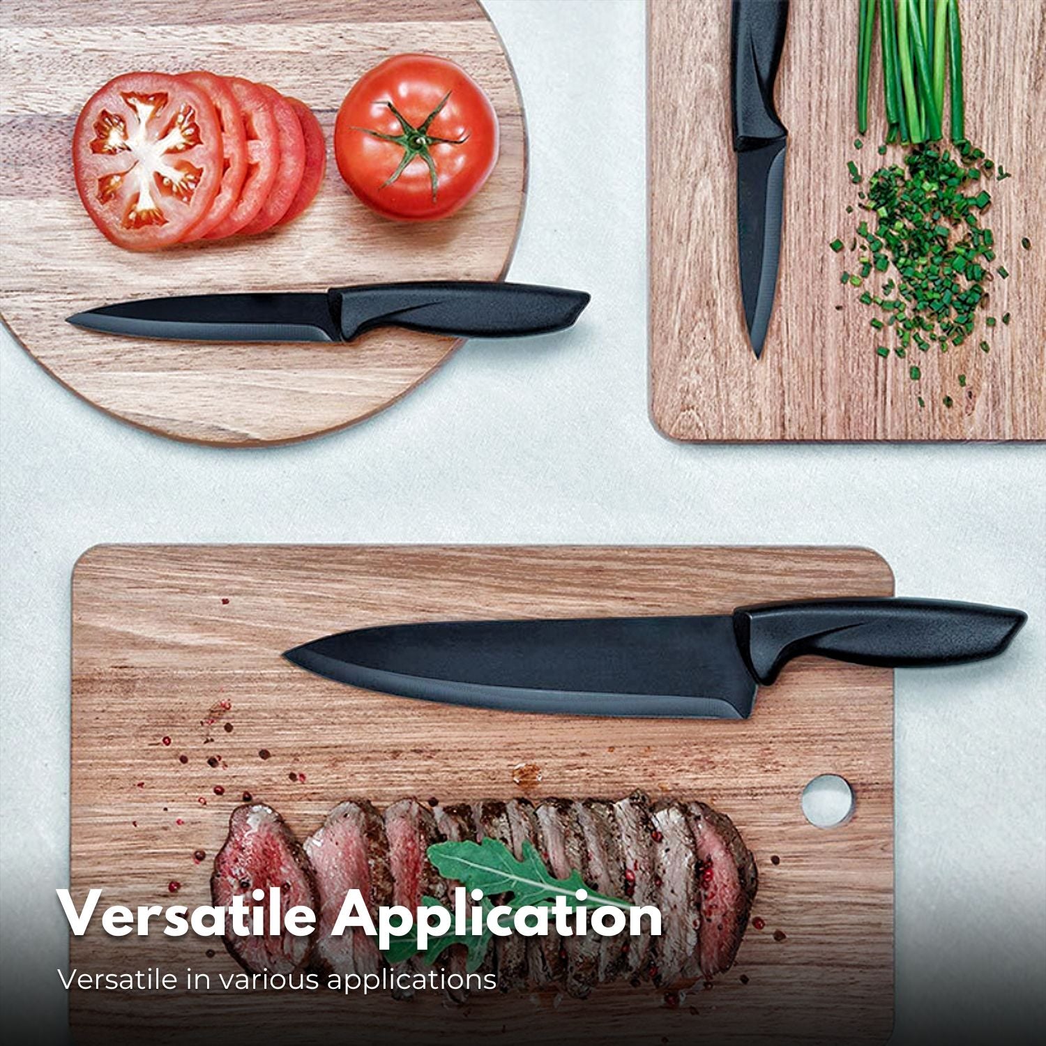 Acrylic Knife Holder: This knife set features an elegant acrylic knife holder, adding a touch of beauty to your kitchen while ensuring convenient access to your knives.