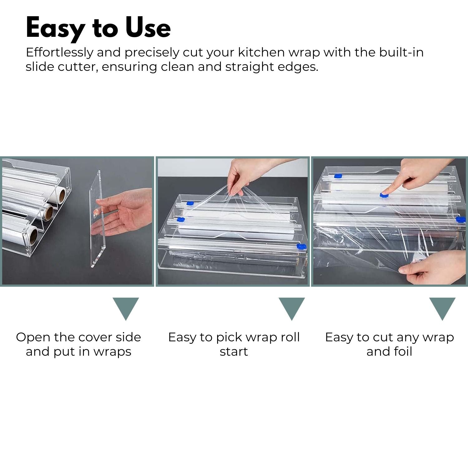 Compatible with most brands and 30cm roll Designed to accommodate various wrap brands and sizes, ensuring versatility and convenience in your kitchen.