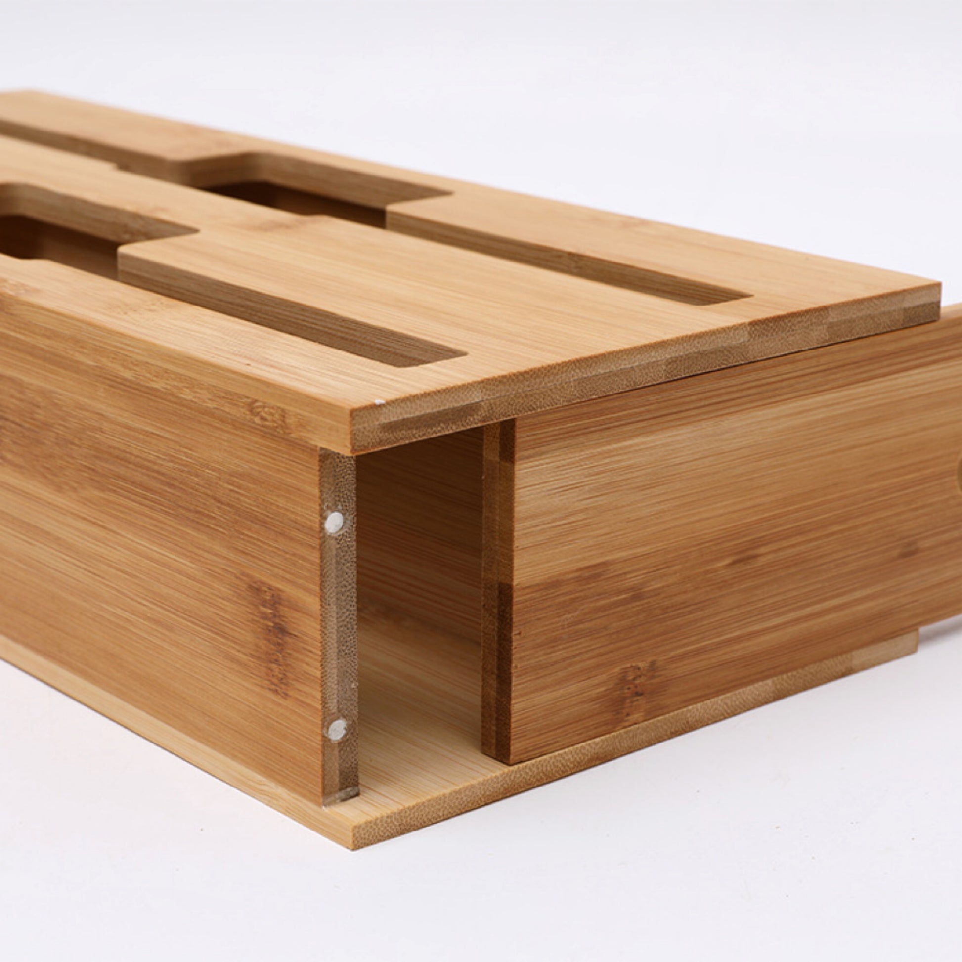 BOX IT UP, SORT IT OUT, HANG IT UP: Say goodbye to clutter and hello to organization with the GOMINIMO 3-in-1 Bamboo Wrap Dispenser. It has three slots for different types of wraps, so you can store and sort them easily and conveniently. You can also mount it on the wall to free up some space and grab your wraps in a snap.