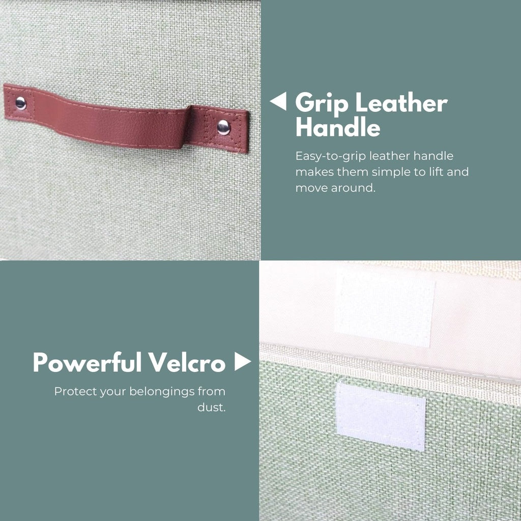 - Dust Proof & Easy to Move: Crafted from durable fabric, these storage boxes come with well-made lids to protect your belongings from dust. The easy-to-grip leather handle makes them simple to lift and move around.