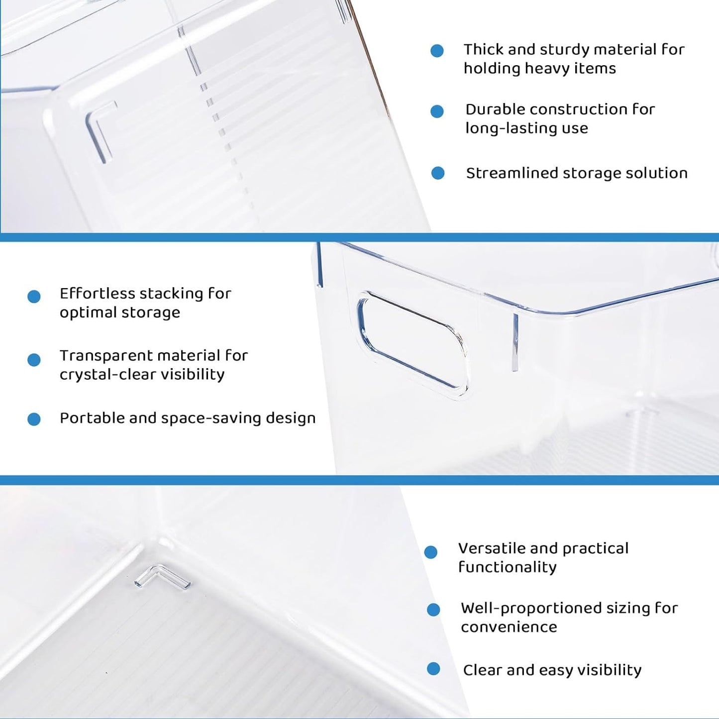 Clear and Stackable: This 8 Pack Storage Bin offers clarity for quick identification and a stackable design for easy storage. Keep your belongings easily visible and neatly organized.