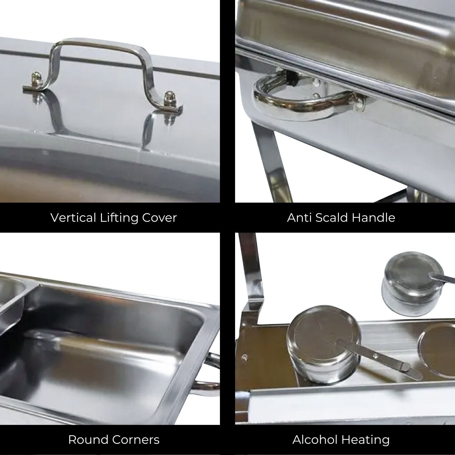 Durable Stainless Steel: Our Buffet Warmer Pan features a full stainless steel construction, providing robustness, rust resistance, and effortless cleaning. Ensuring a reliable and hygienic solution for keeping your food warm at its best.