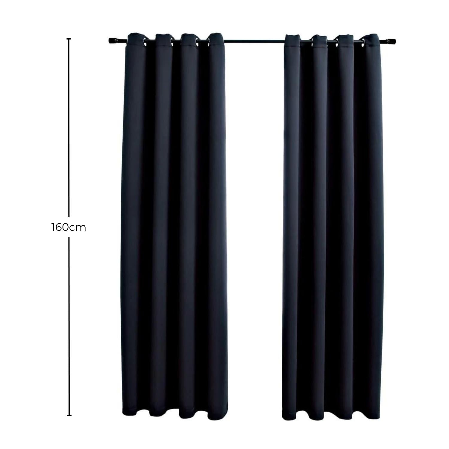 Gominimo Blackout Window Curtains Insulated Set of 2 W132cm x D160cm Black