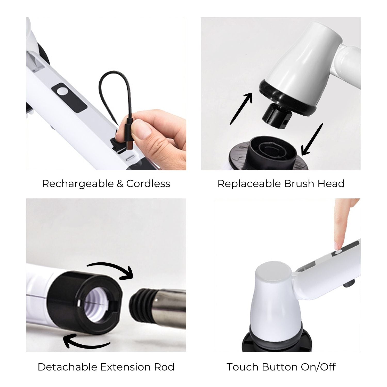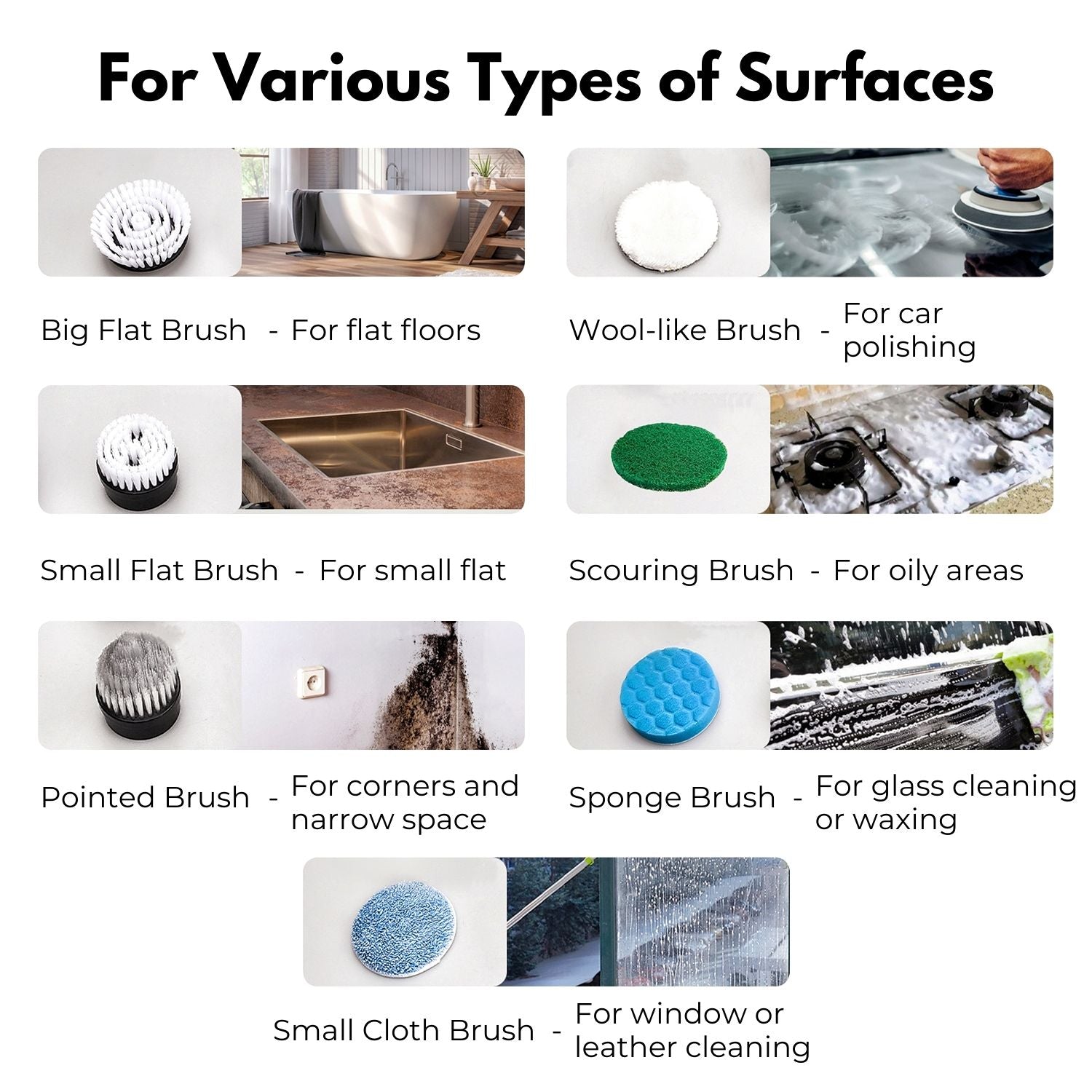 Experience the joy of variety with 8 dynamic Replaceable Drill Brush Heads, including a Sponge Disk, Polyester Cloth Tray, Fiber Disk, Large Flat Brush, Velcro Fixing Disk, Wool Disk, Pointed Brush Heads, and Small Flat Brushes, ensuring every nook and cranny gets the attention it deserves! - Ultimate Adaptability: Whether it's the bathroom, kitchen, or your car, our 55 Inch Adjustable & Detachable Long Handle Extension Arm ensures no spot, including floors, tiles, sinks, showers, bathtubs, toilets, windows, countertops, stovetops, grout lines, appliances, and outdoor furniture, is out of reach!