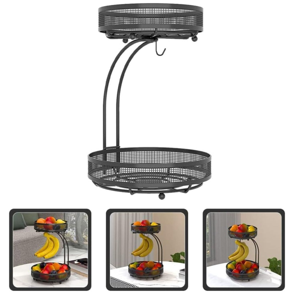 - 1x Gominimo Detachable 2 Tier Countertop Fruit Basket Bowl with Banana Hook (Black)