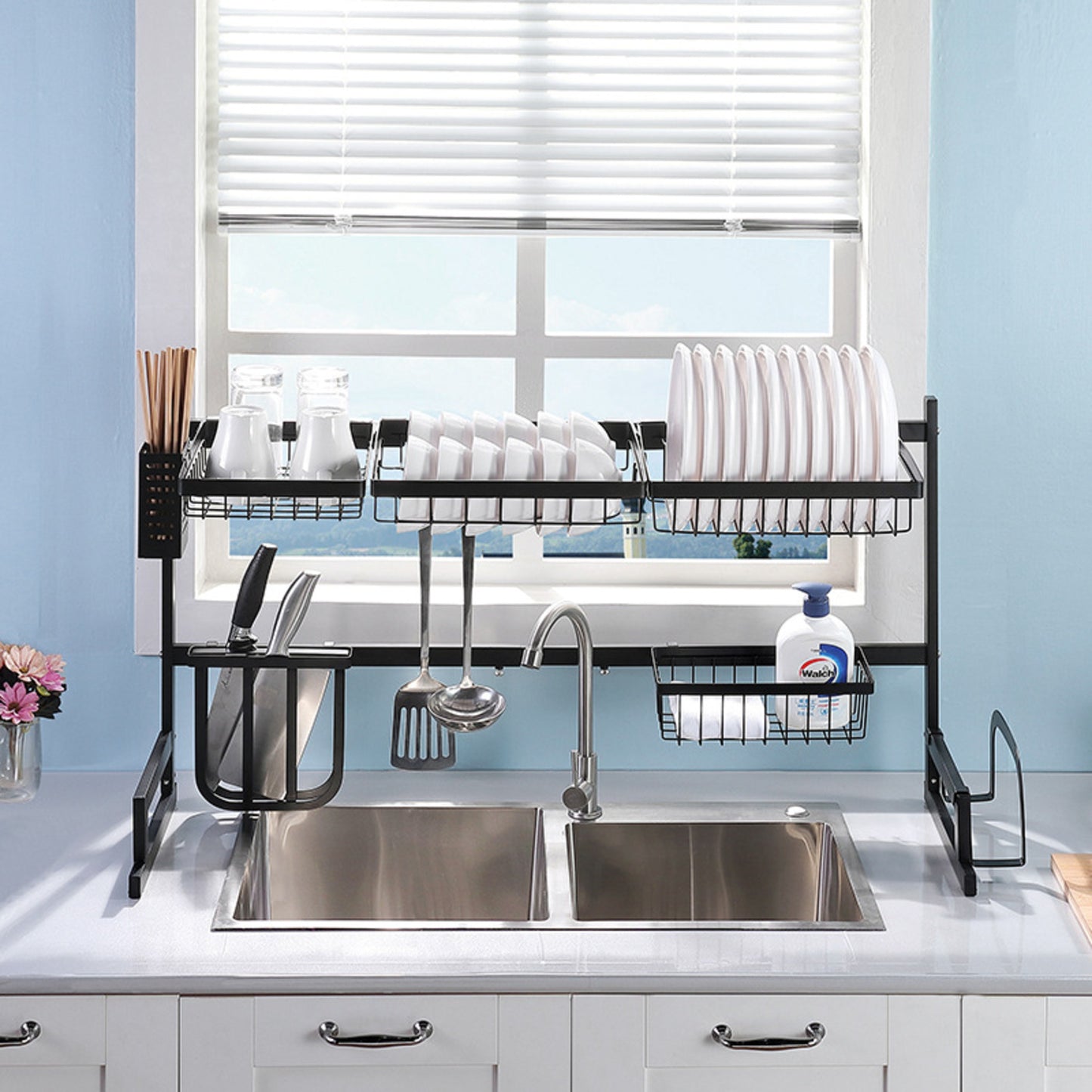 GOMINIMO Dish Drying Rack Over Sinks Adjustable 85-100cm (Black)