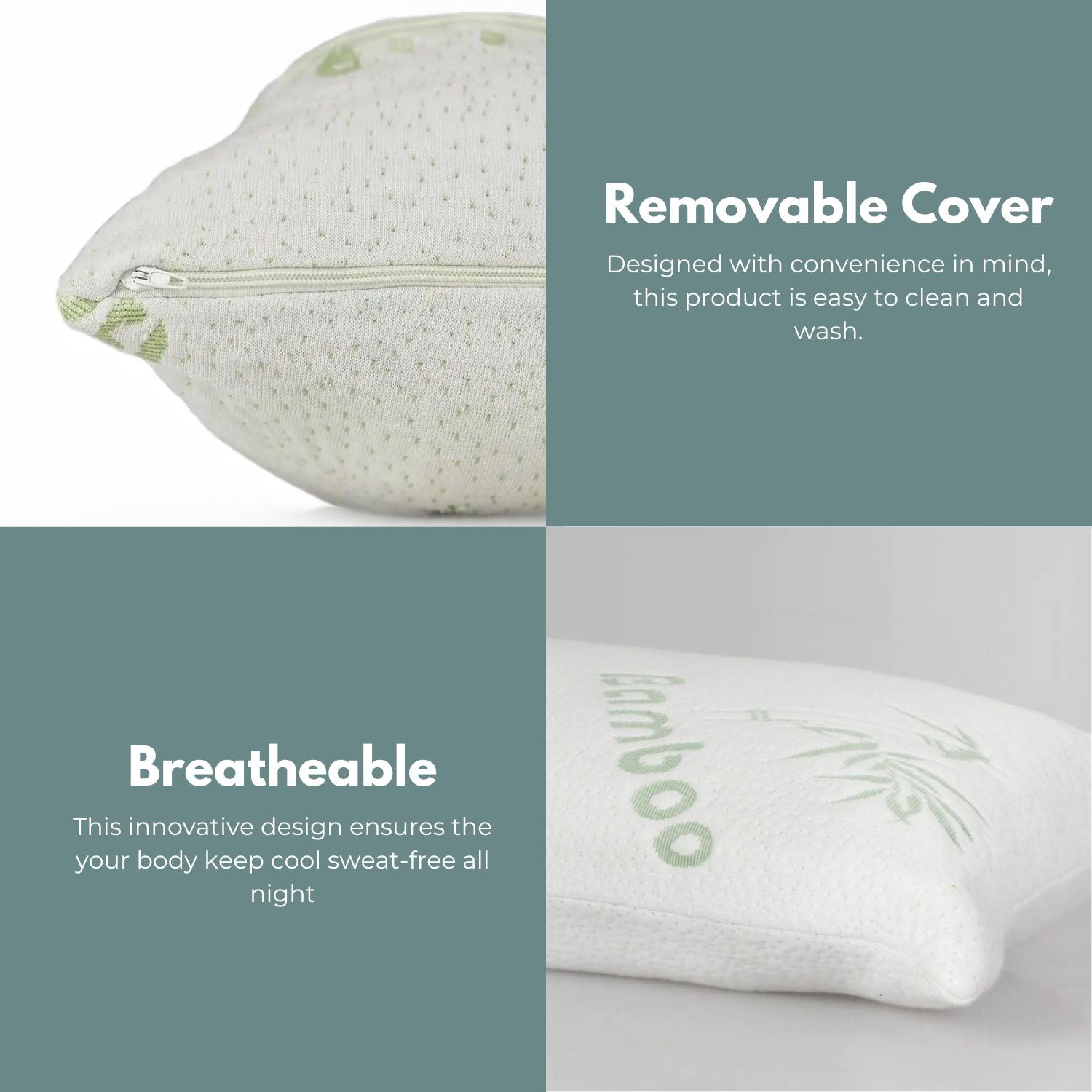 - All Seasons: No matter the temperature, memory foam will serve you well. Great at remaining breathable even in hotter weather. Let the natural bamboo fiber pillow cover help you sleep.
