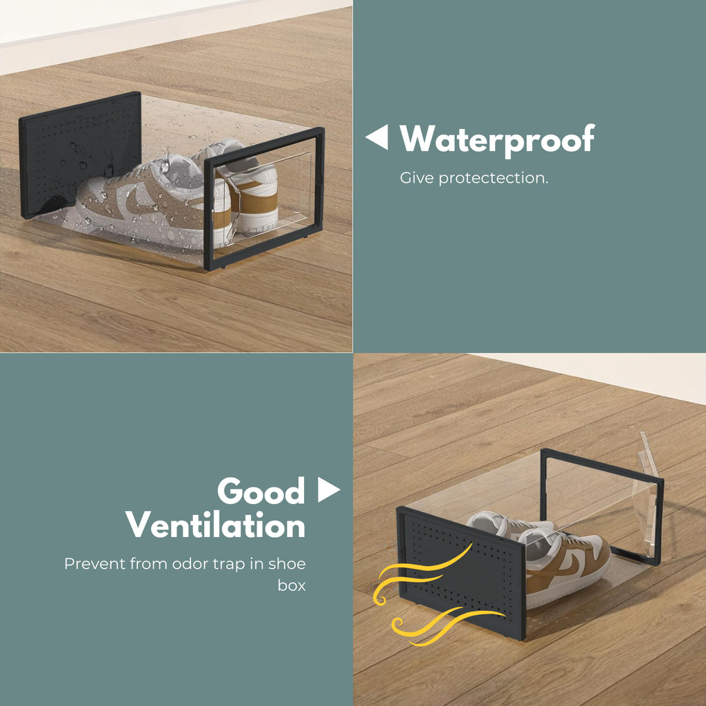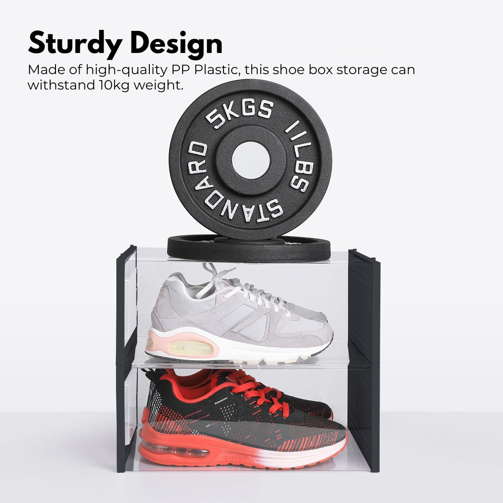 - 24x Clear Shoe Rack Boxes with Black Frames (Black)