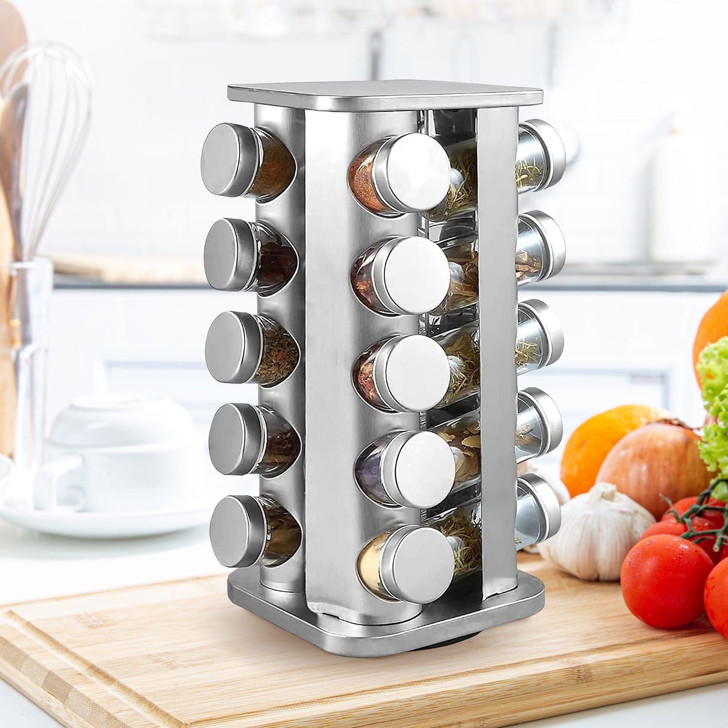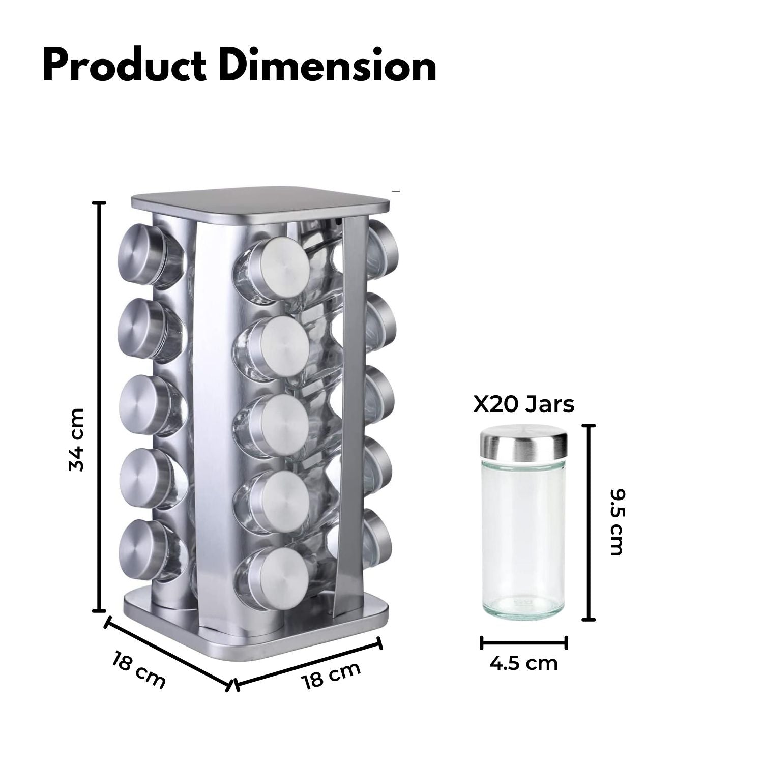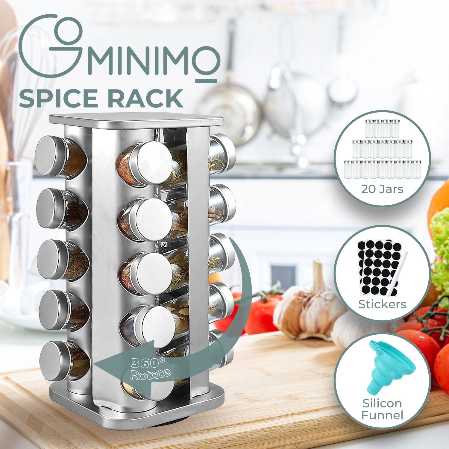 Product Overview : Gominimo 20 Jars Quadrate Rotating Spice Rack, designed to revolutionize your kitchen organization. With its effortless access feature and sleek design, this rack seamlessly integrates into any space while keeping your spices neatly organized and easily identifiable. Simplify your cooking process and bid farewell to kitchen chaos with this versatile spice rack.