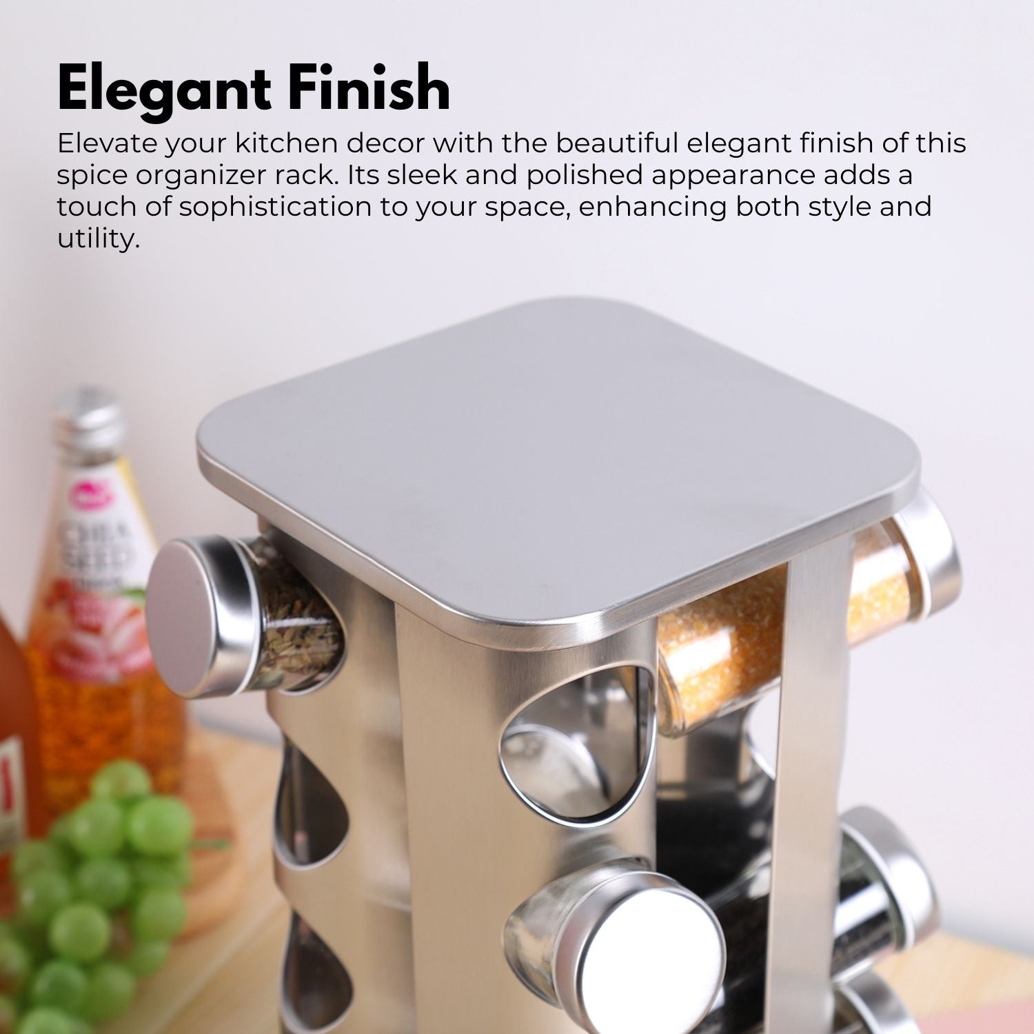 Space-Saving Design: Maximize your kitchen space with our compact and stylish spice rack, designed to fit on any countertop or cabinet. Streamline your cooking process by having all your spices in one accessible location.