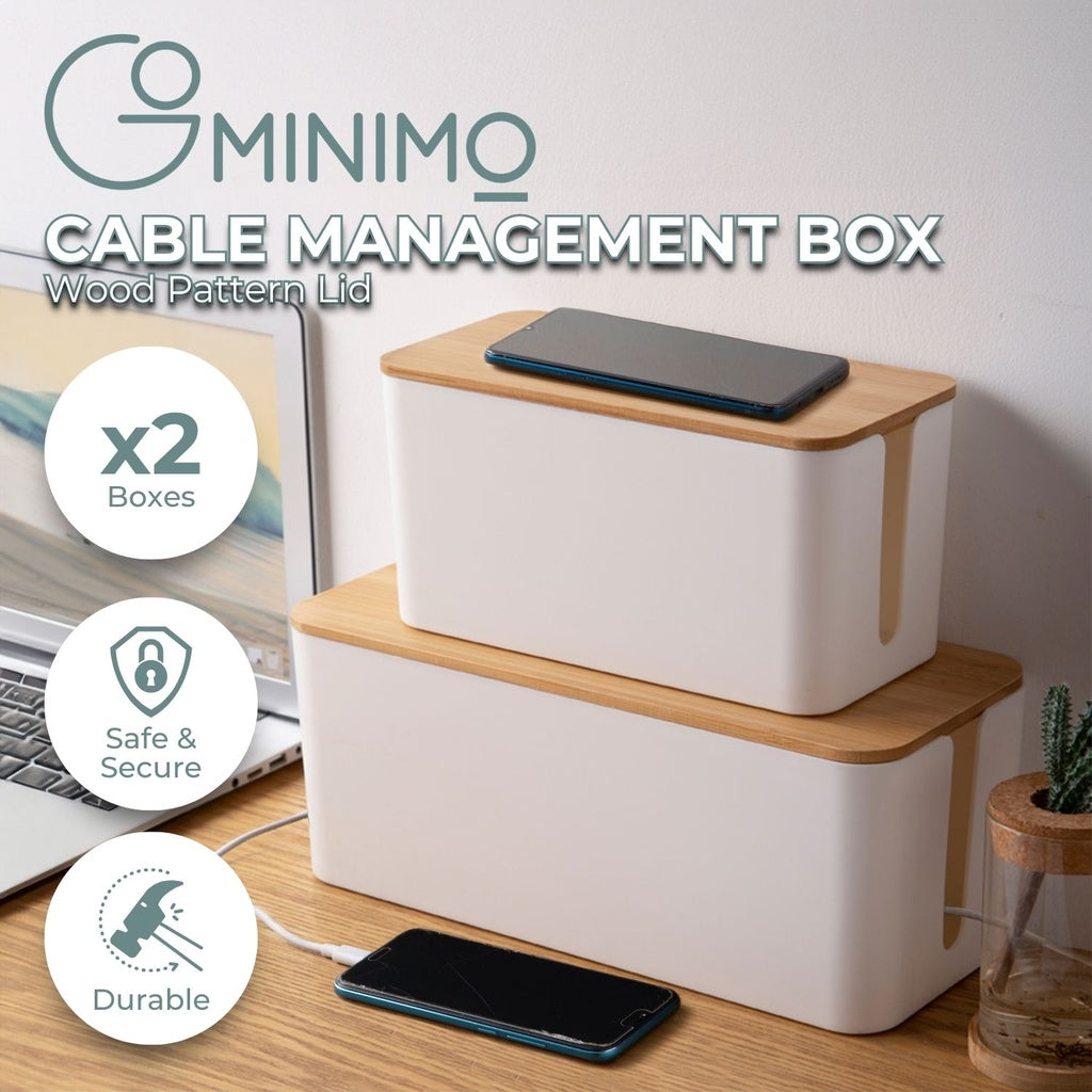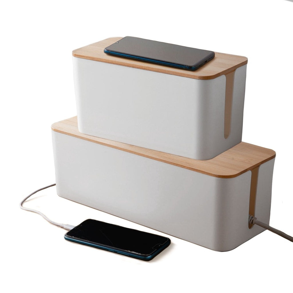 GOMINIMO set of Two Cable Management Box with Bamboo Lid (White)
