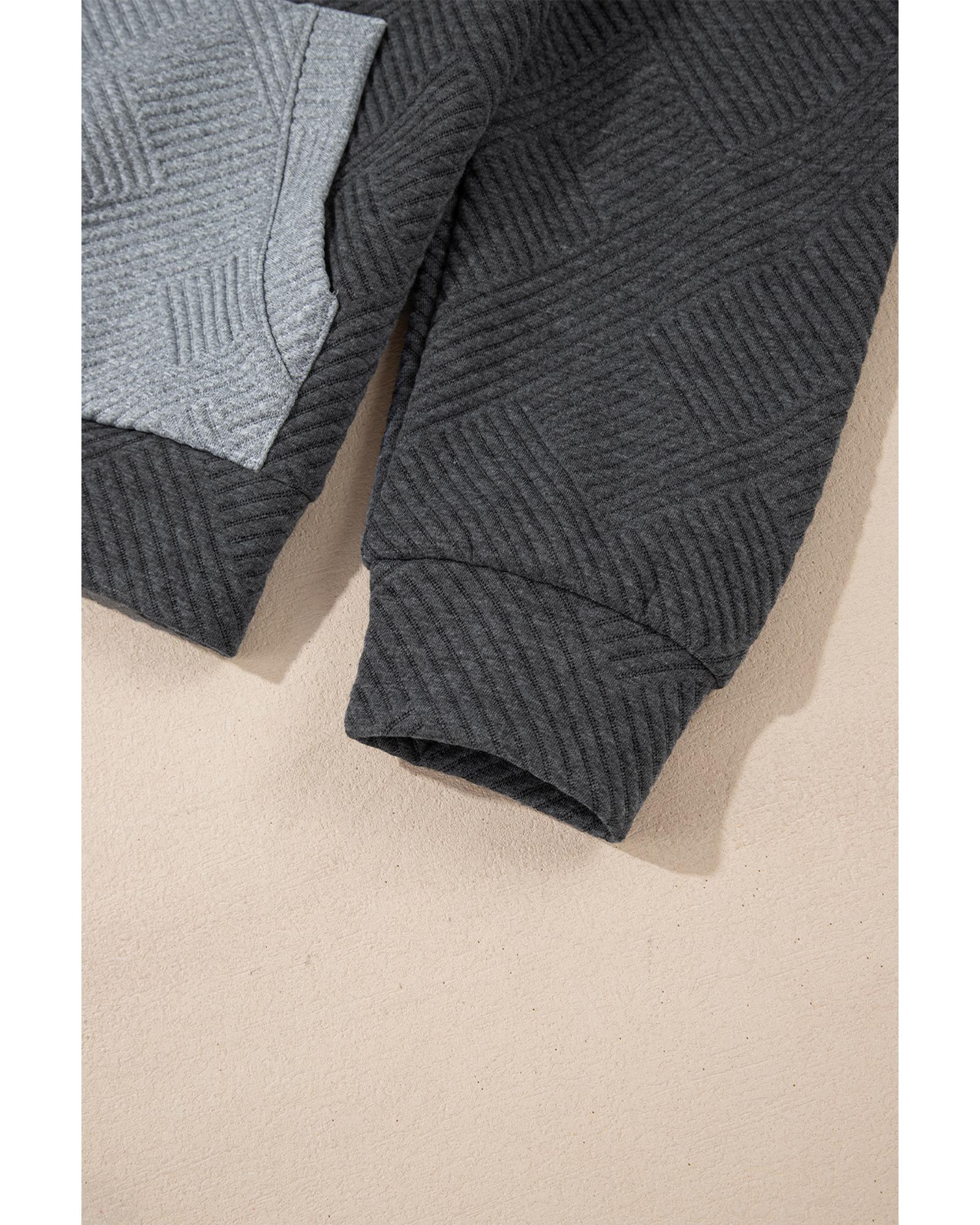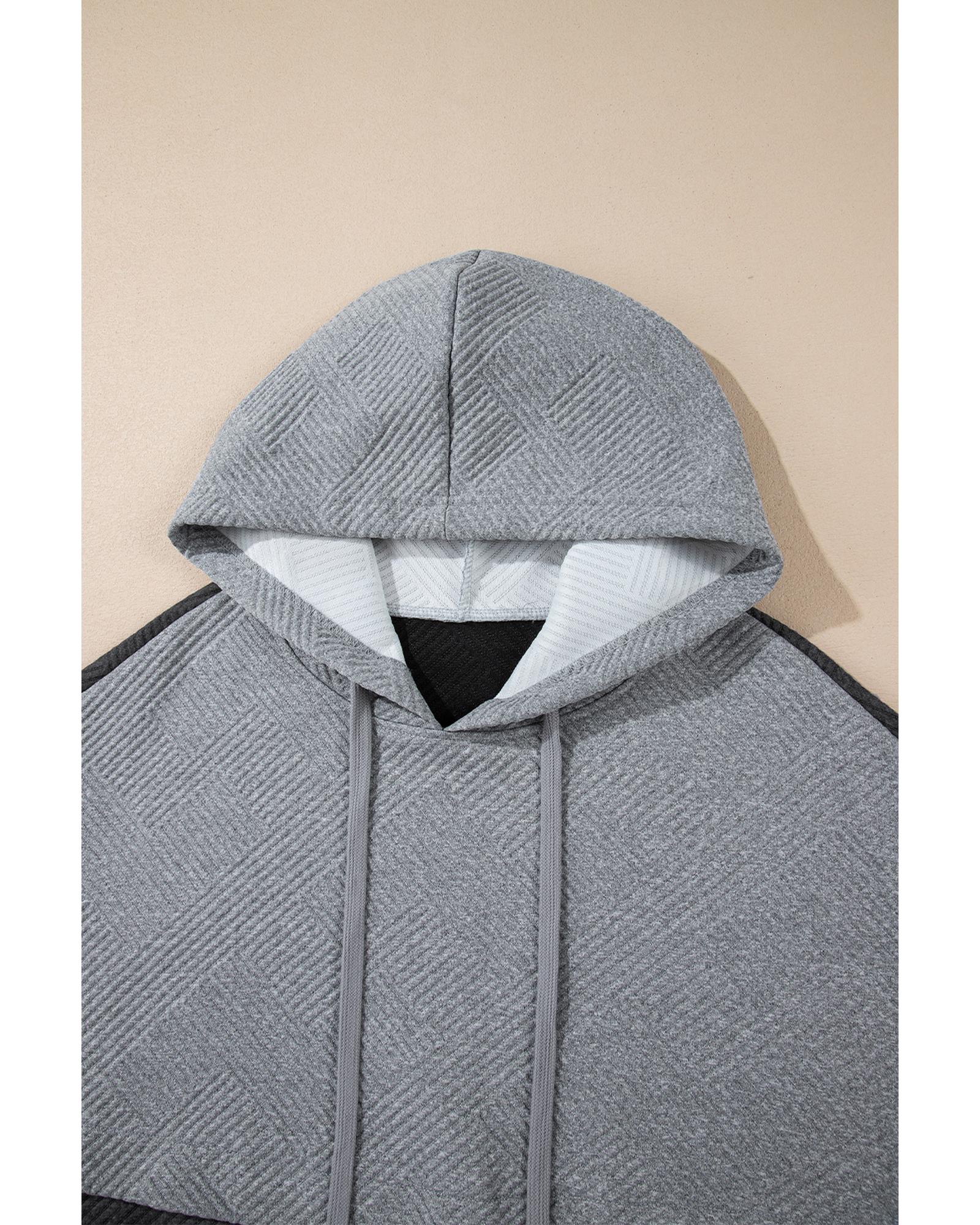 Gray Textured Color Block Kangaroo Pocket Drop Shoulder Hoodie - L