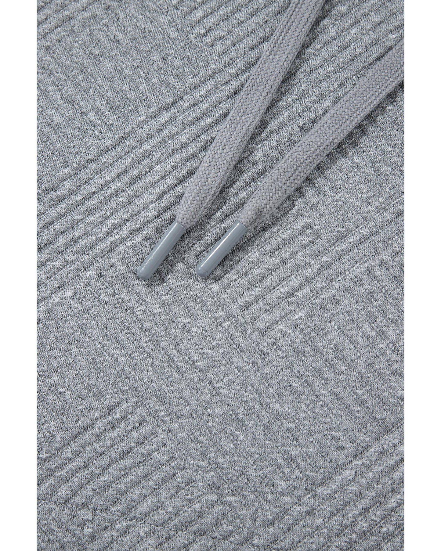 Gray Textured Color Block Kangaroo Pocket Drop Shoulder Hoodie - S