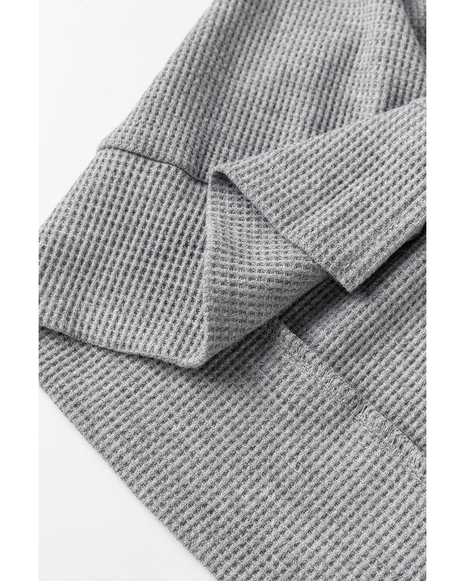 Gray Waffle Knit Fleece Lined High Low Oversized Hoodie - S