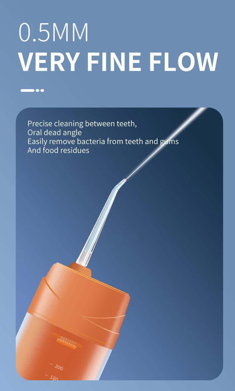 - Powerful & Precise Cleaning: Delivers a high-pressure water jet with an ultra-fine 0.5mm stream for precise cleaning between teeth and along the gumline. The nozzle is also rotatable for all-around cleaning.