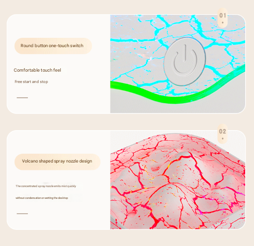 - Simulated Flame/Volcano Effect: Specialized lighting illuminates the mist, creating an impressive visual similar to a gentle volcanic eruption, especially with warm light settings.