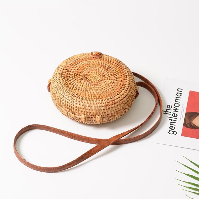 • 1 x Handmade Round Rattan Bag Vintage Art Beach Diagonal Bag 18X18X6Cm