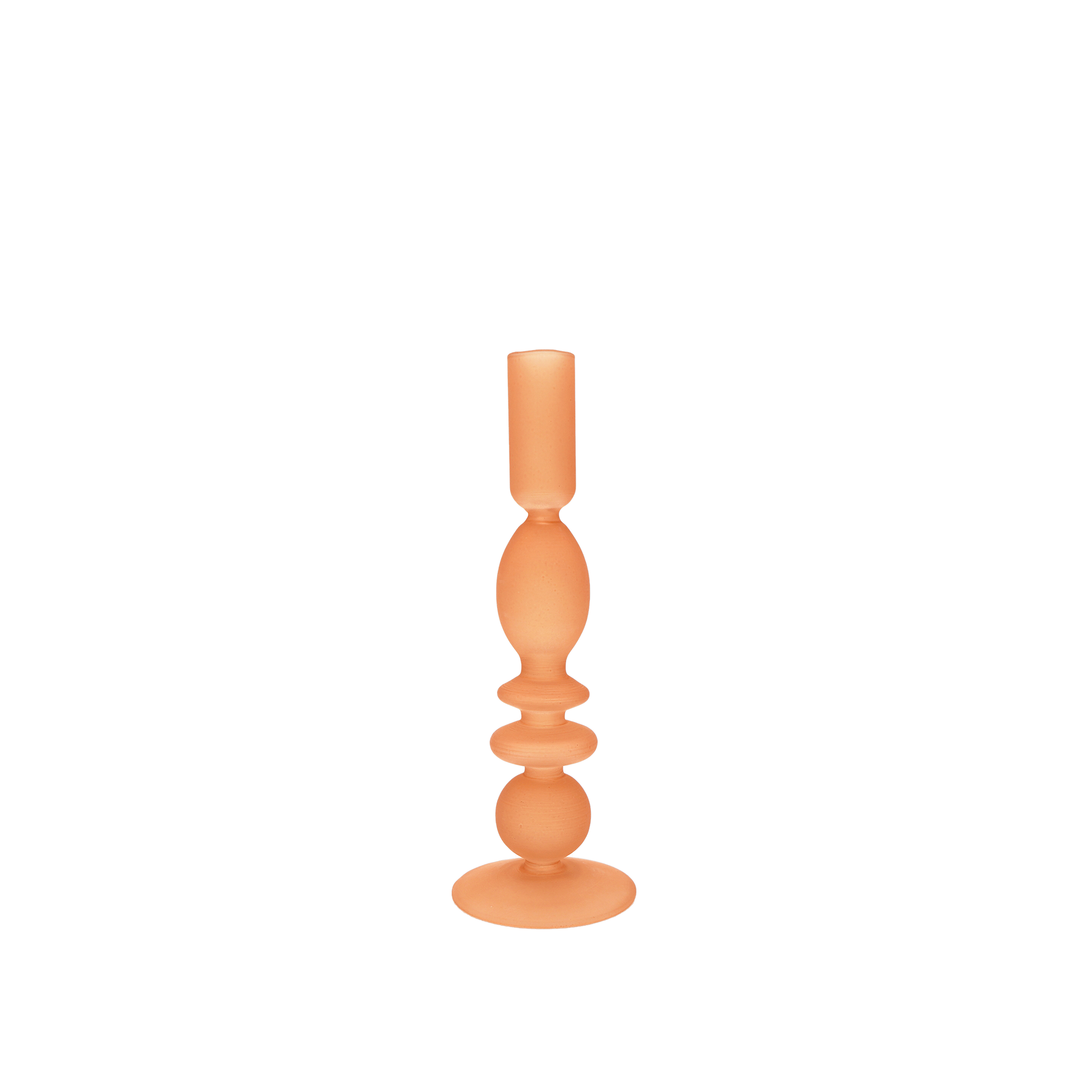 The distinct predilection for pure geometric volumes lends this candleholder the signature charm of contemporary artwork, handcrafted of matte glass. Its silhouette is composed of a combination of truncated cones and spheres topped by a dainty cylinder.