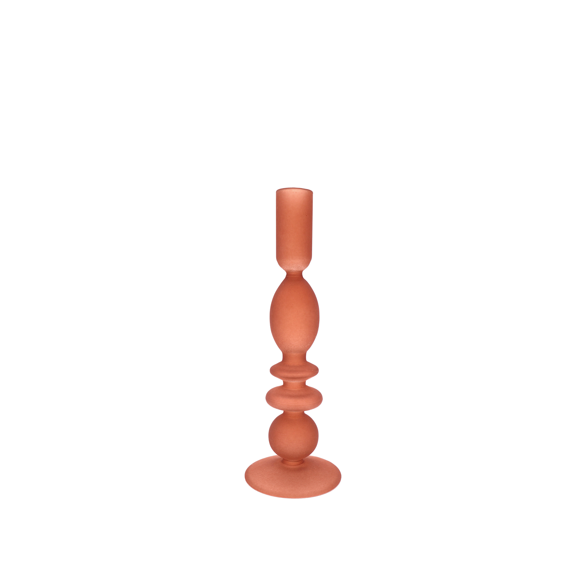 The distinct predilection for pure geometric volumes lends this candleholder the signature charm of contemporary artwork, handcrafted of matte glass. Its silhouette is composed of a combination of truncated cones and spheres topped by a dainty cylinder.