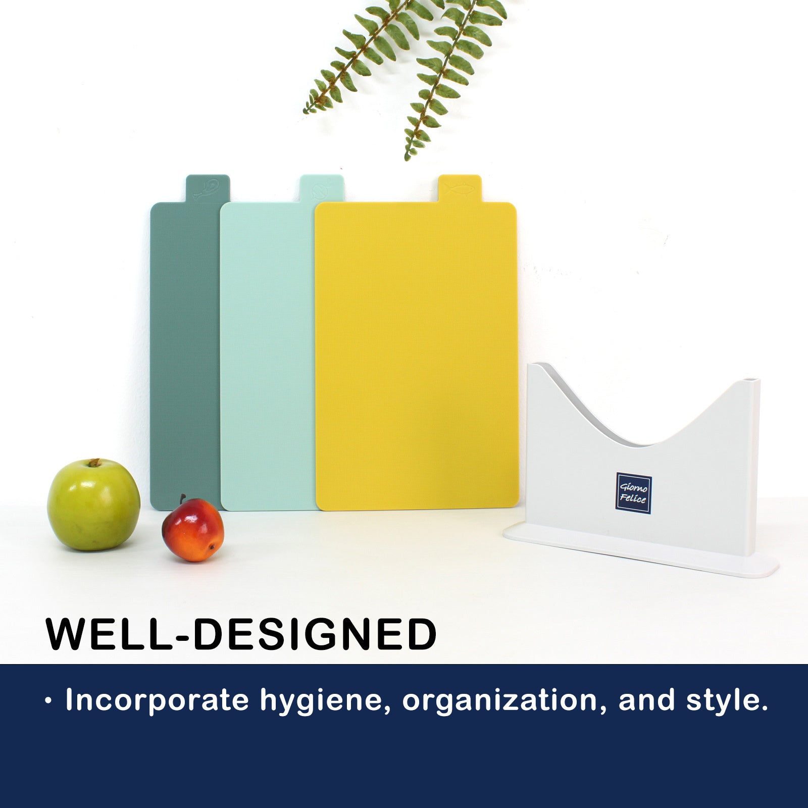 Giorno Felice Index Cutting Board Set 3P with a Holder Kitchen Stand Fish Chopping Boards
