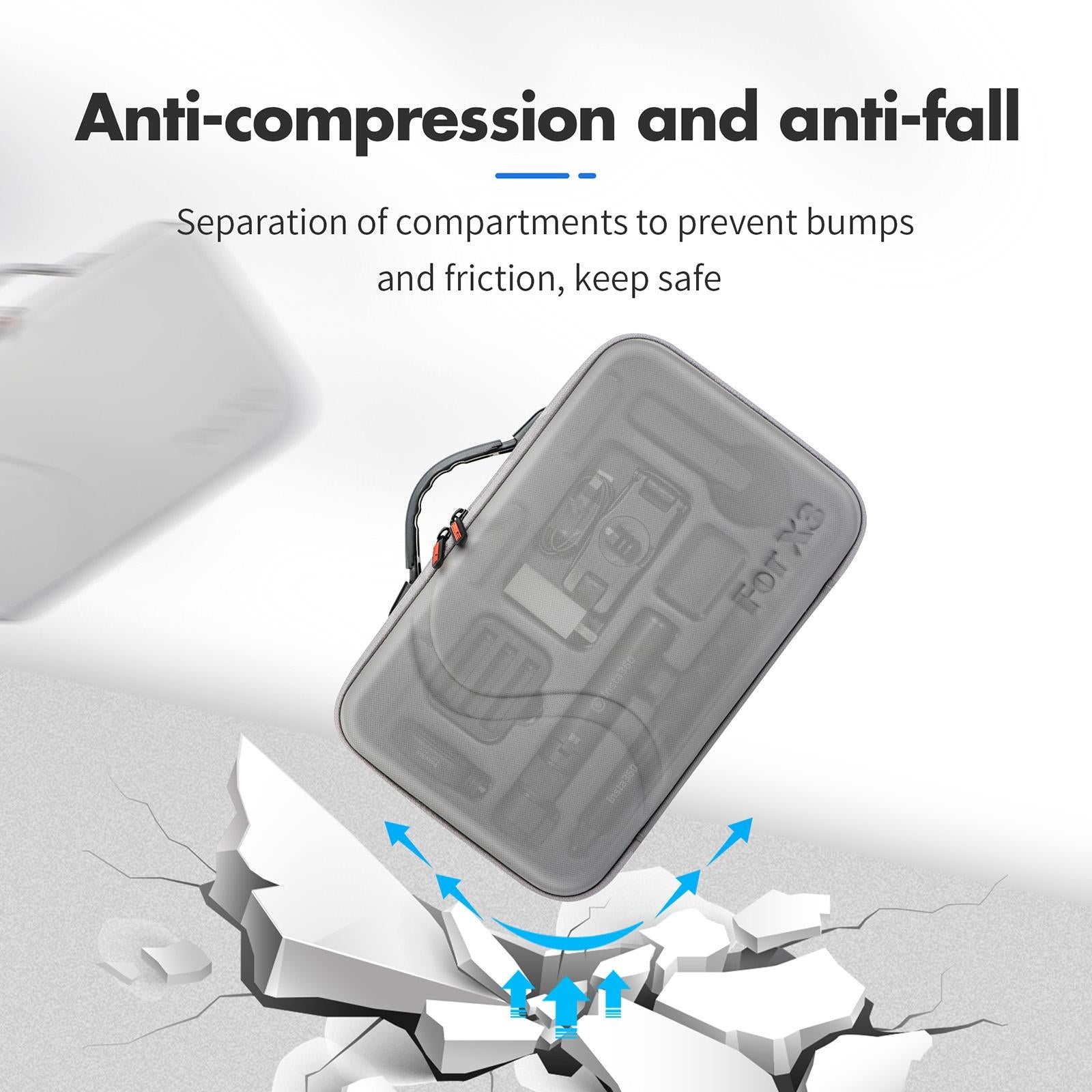 • It is specially designed for Insta360 X3, with precise mold opening, small volume and large capacity, and can simultaneously store 120cm selfie stick+bullet time handle+charging steward+3 batteries+ONE X3 body+protective sleeve+backpack clip+charger+other small accessories;