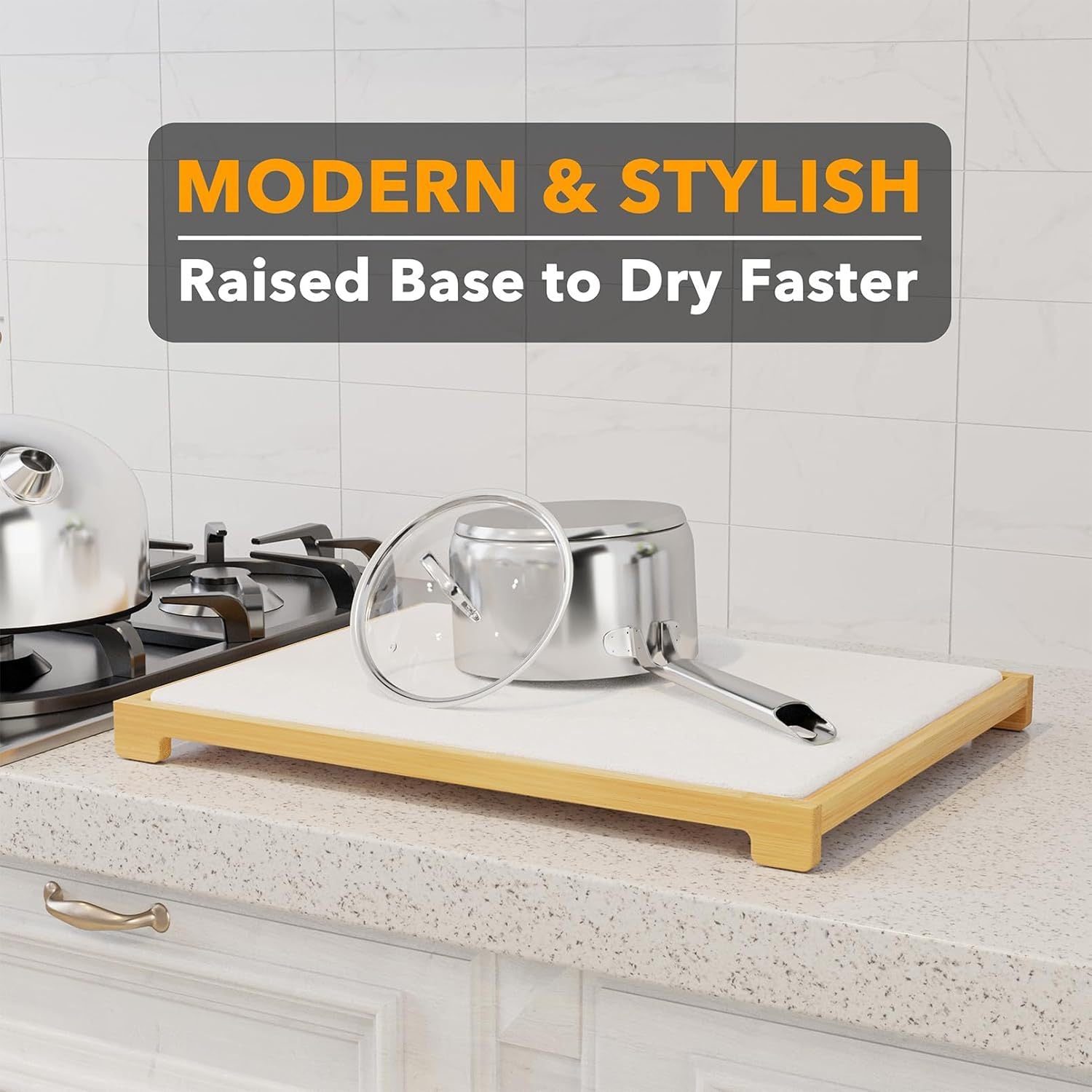 Instant Dry Stone Dish Drying Mat with Bamboo Rack - 2 Ways to Use, Quick Absorbent & Stylish